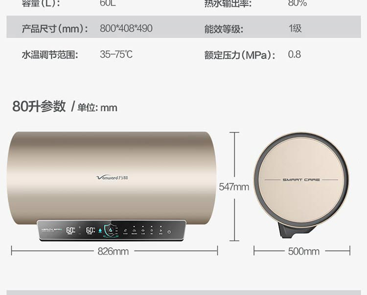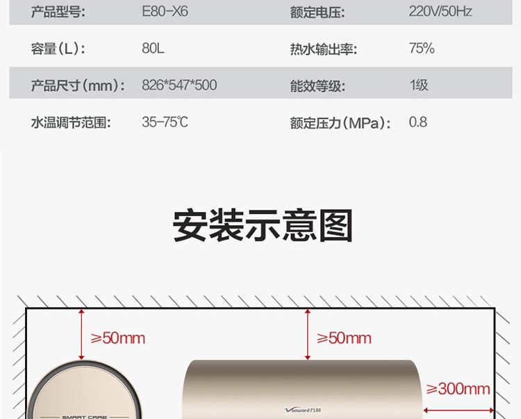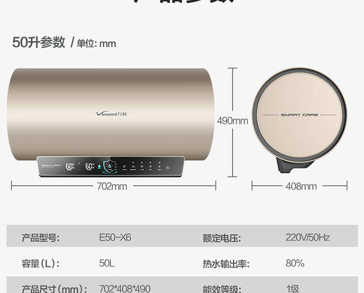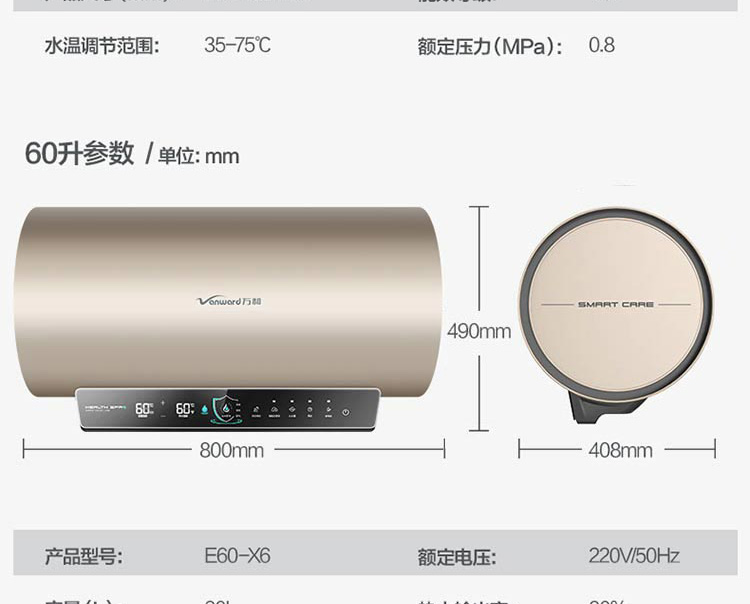 万和(Vanward) E60-X6 60升 电热水器 7+1重智净美肤