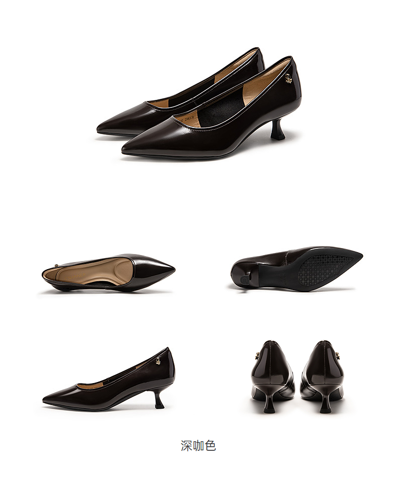 千百度漆皮静音细高跟鞋女秋新款羊皮法式单鞋A25488103