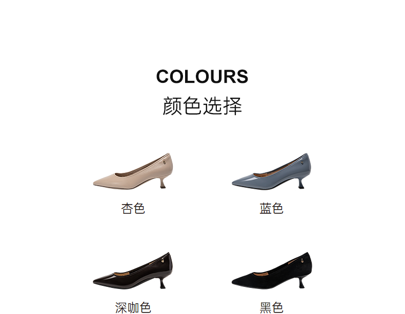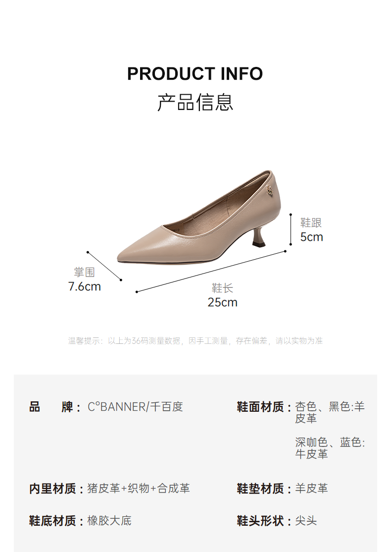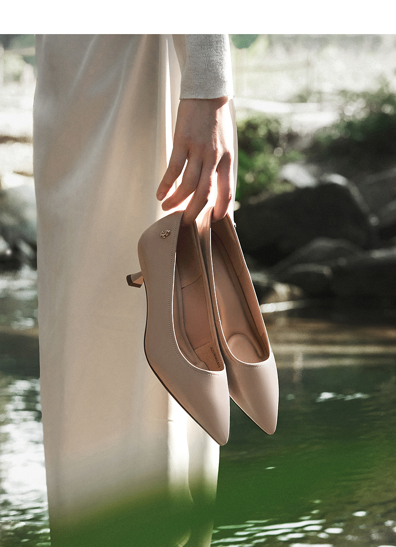 千百度羊皮裸色细高跟鞋女尖头通勤浅口气质法式单鞋A25185601