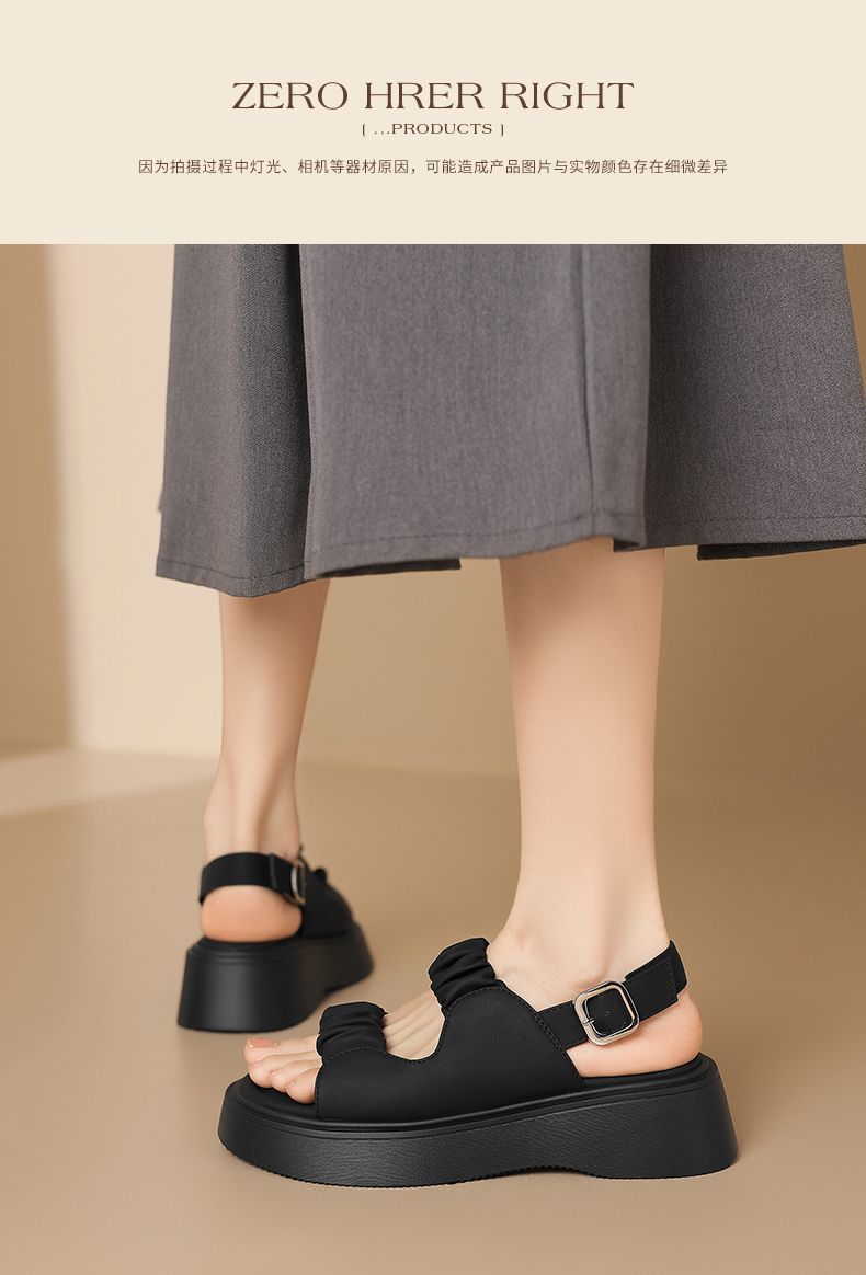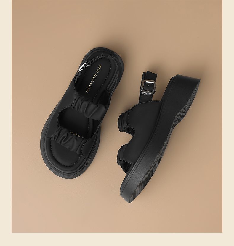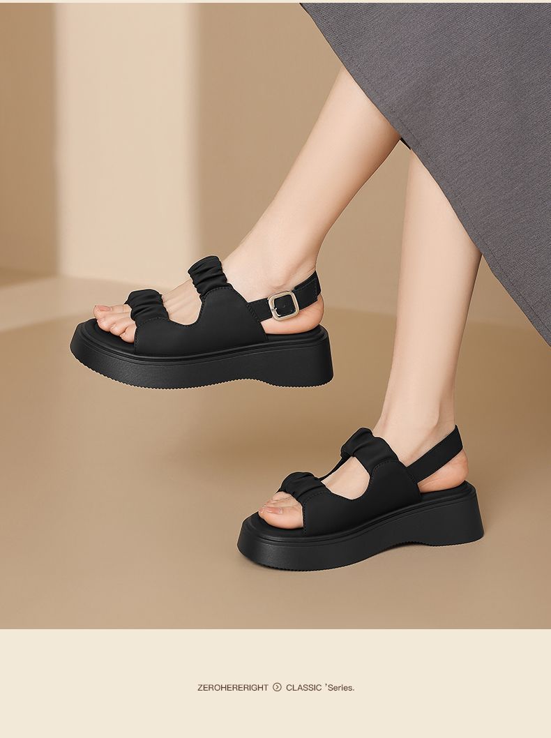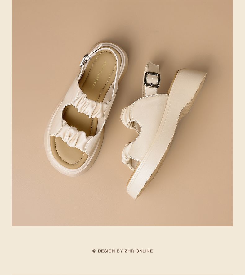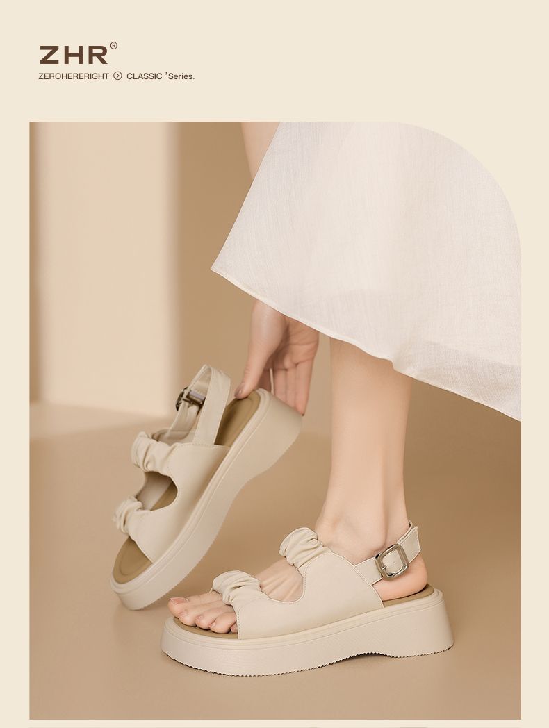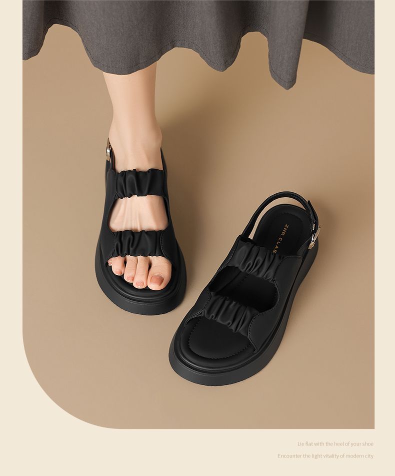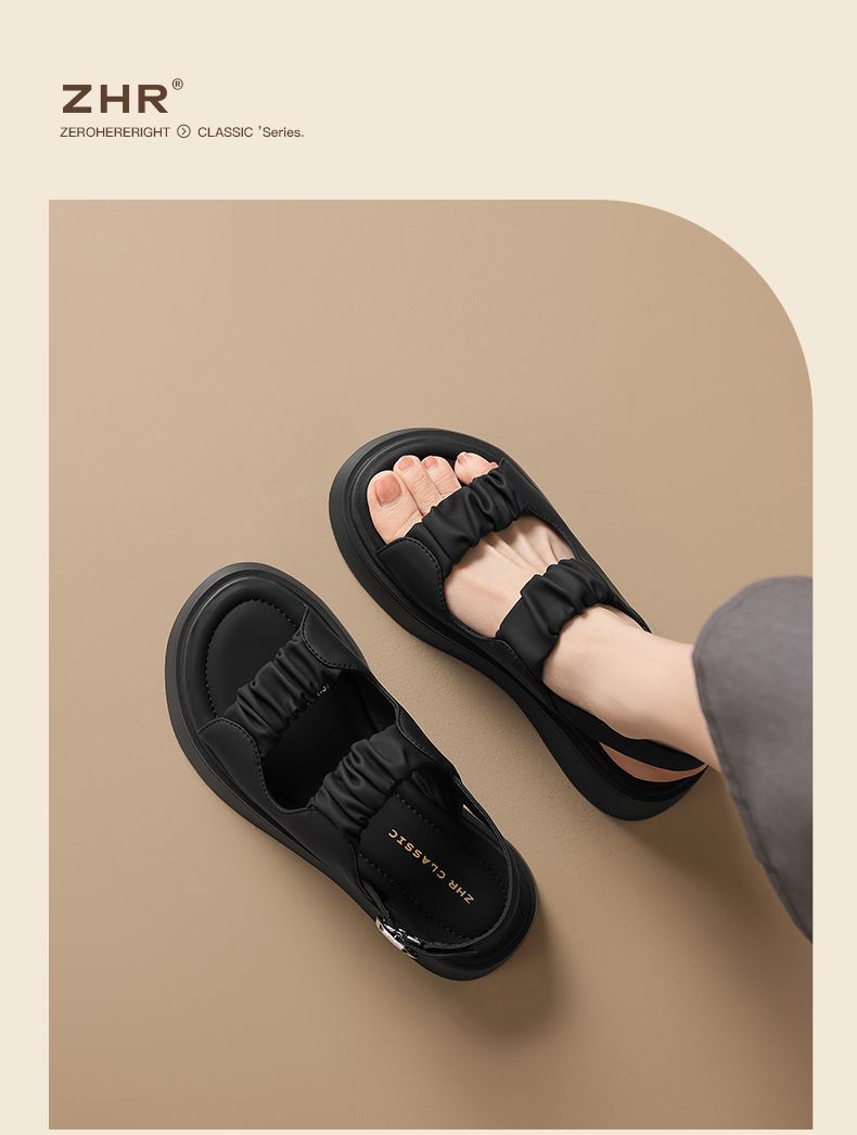 ZHR则则褶皱厚底凉鞋女2025夏季新款平底罗马凉鞋露趾沙滩凉鞋女