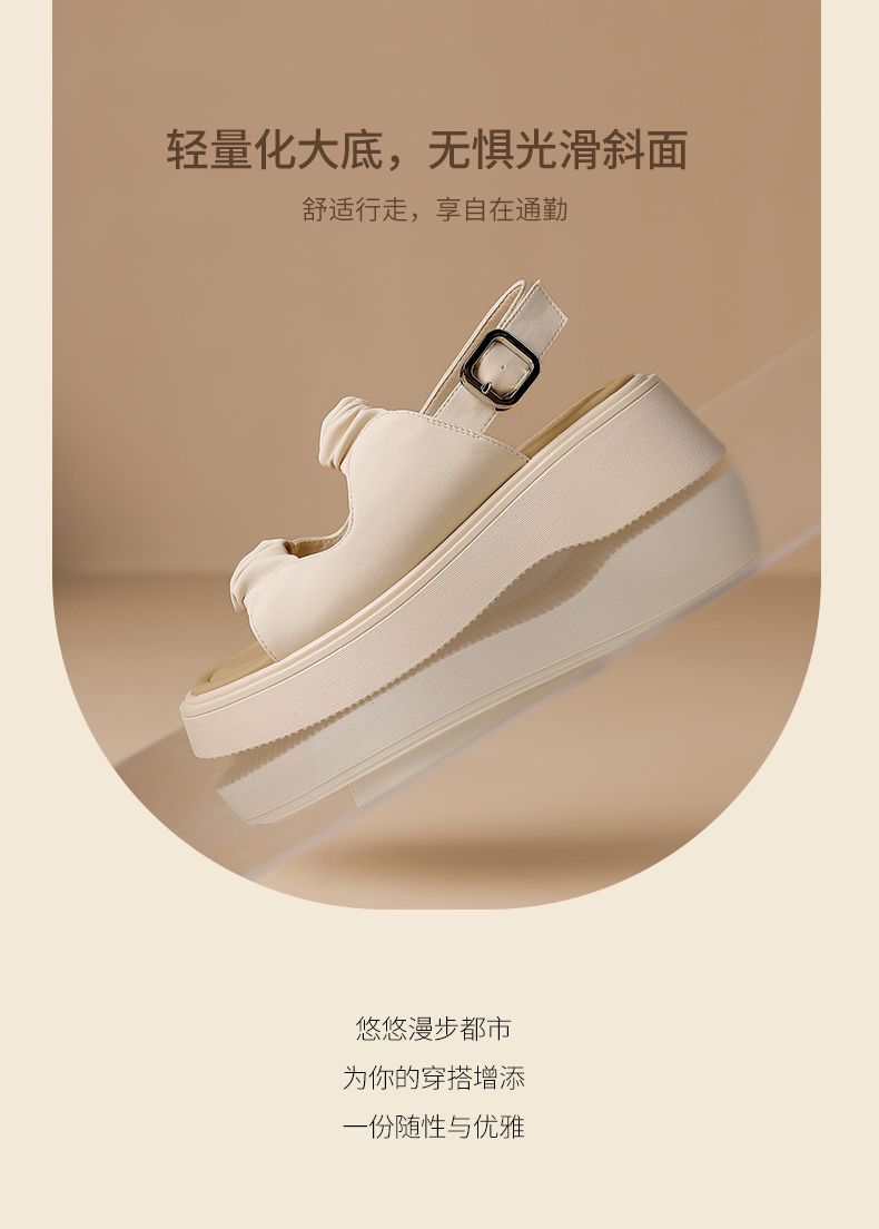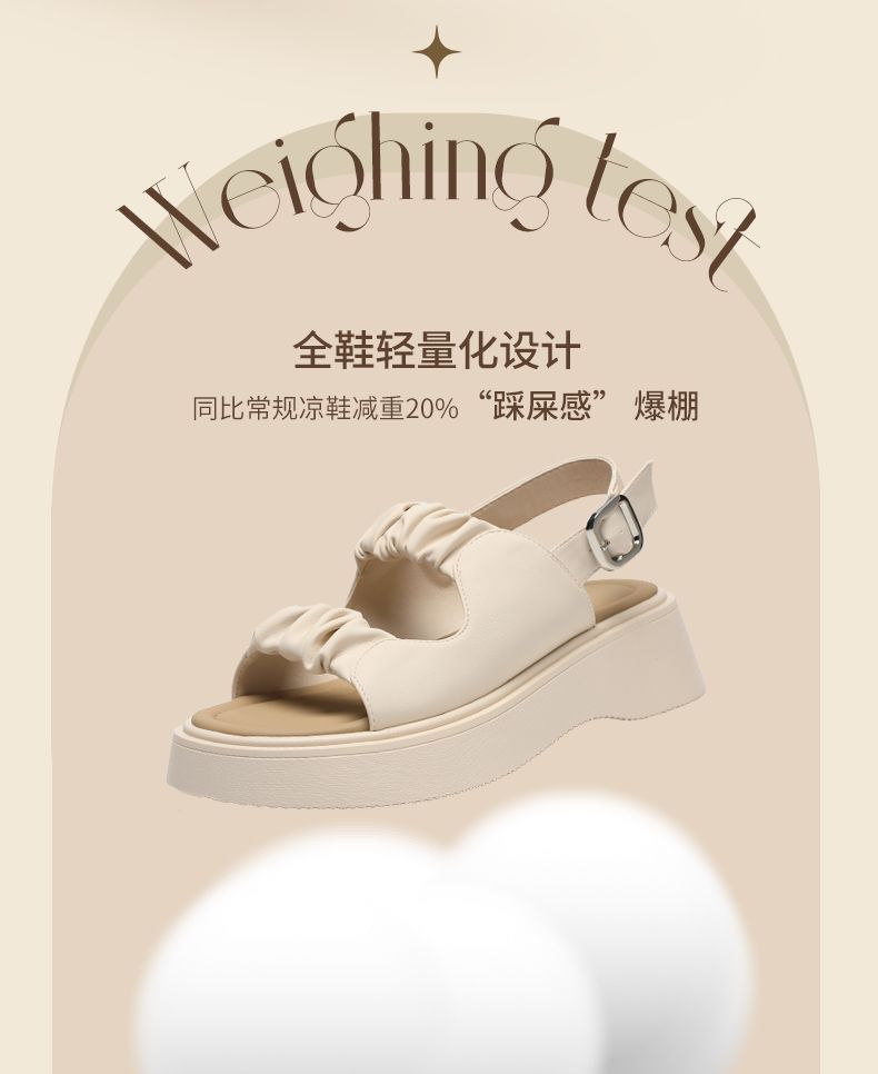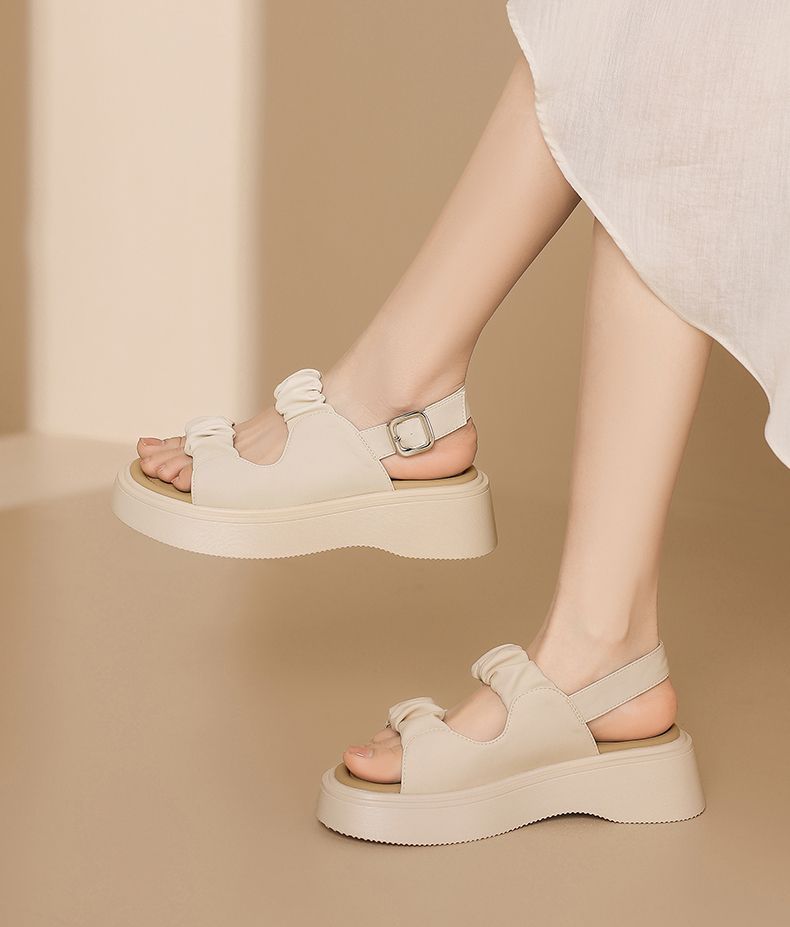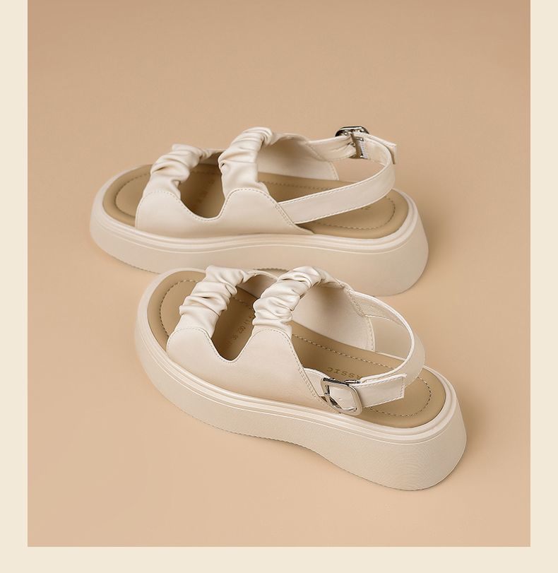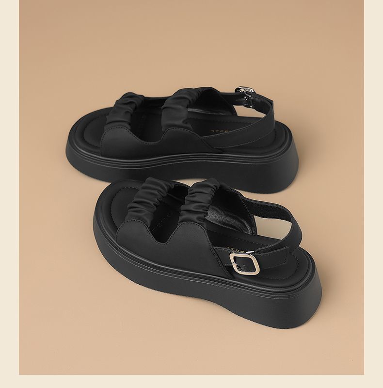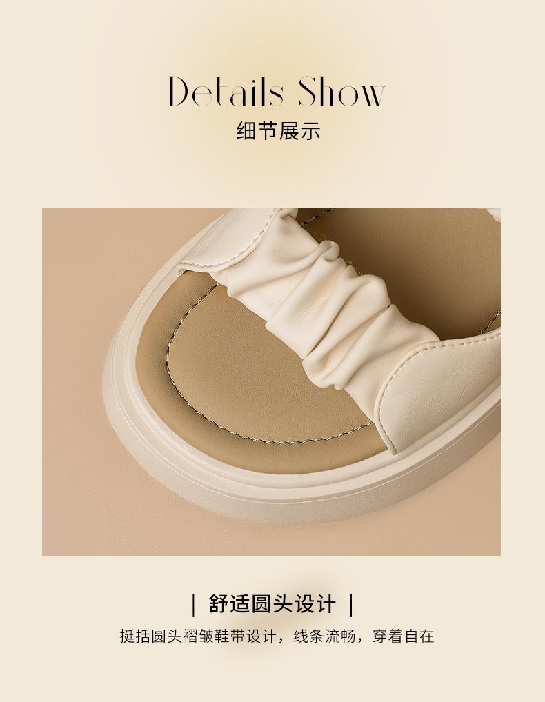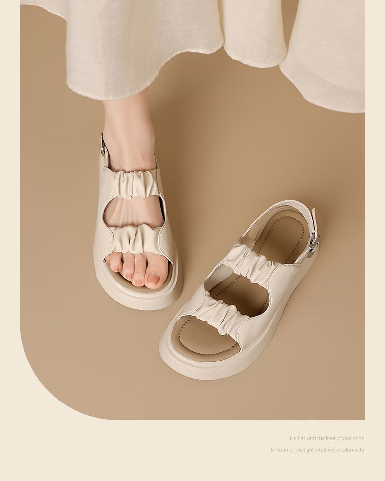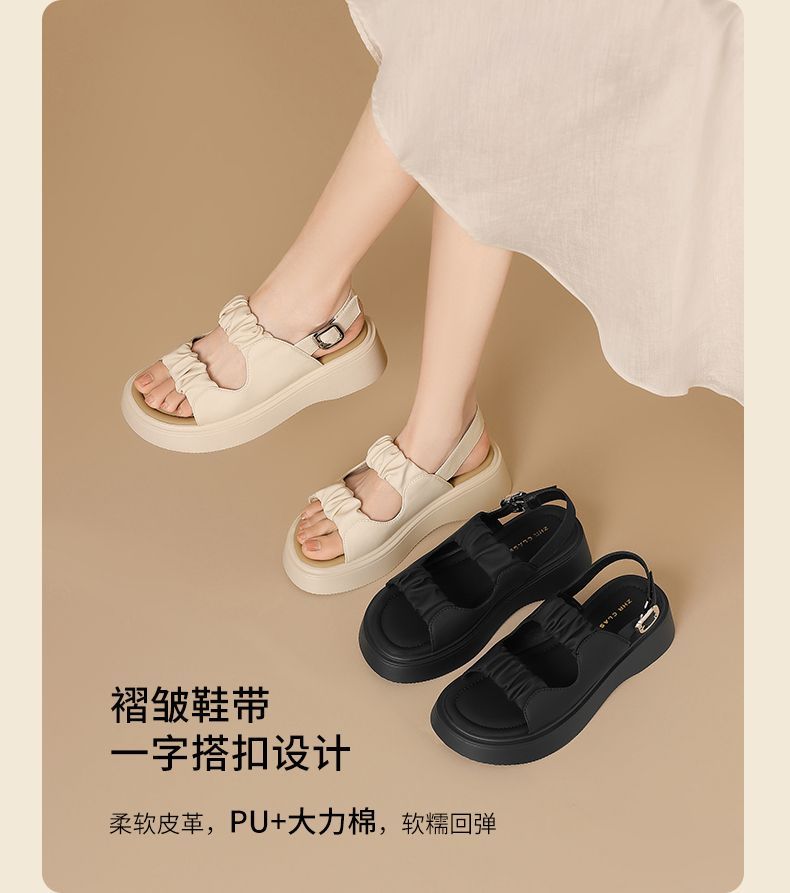 ZHR则则褶皱厚底凉鞋女2025夏季新款平底罗马凉鞋露趾沙滩凉鞋女