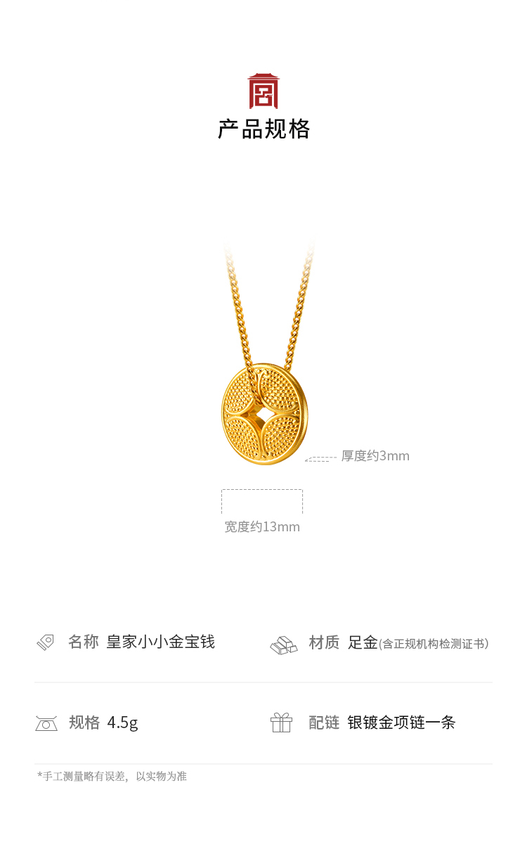 宫匠造办 皇家小小 金宝钱黄金吊坠