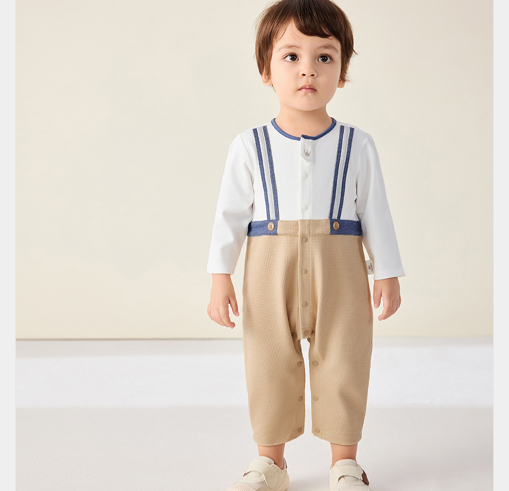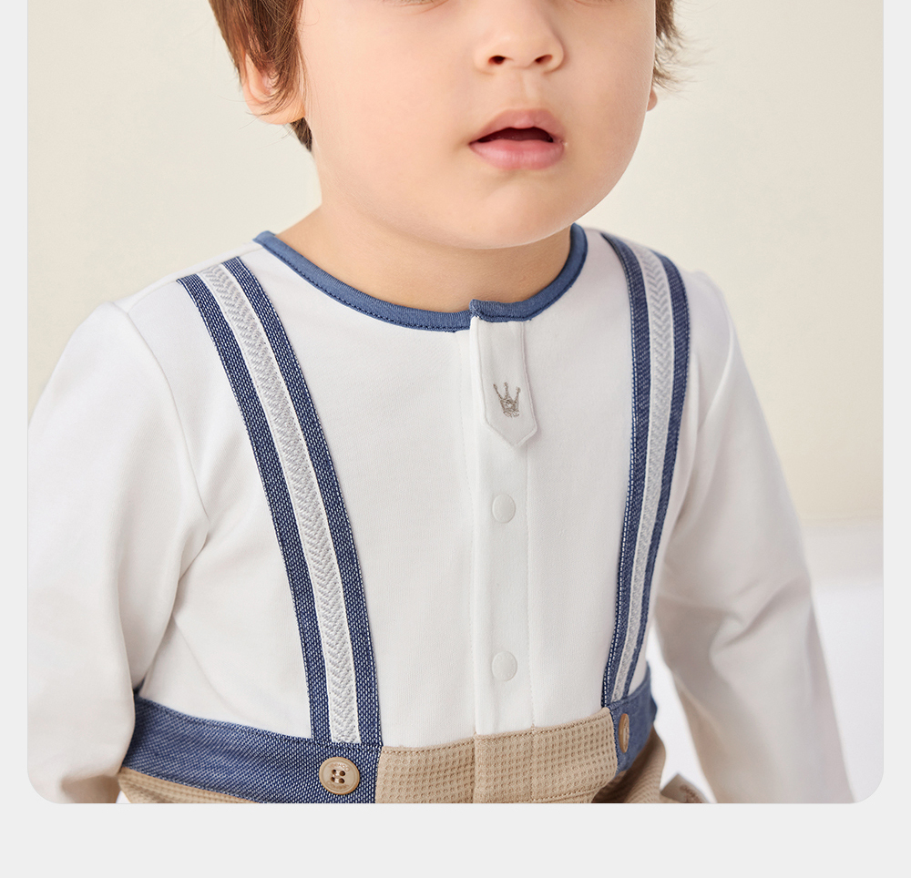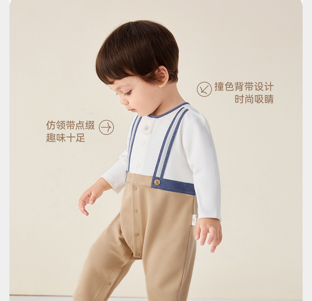英氏婴儿衣服春夏假两件男宝长袖连体衣2025新款爬服YRHAJ1R005A