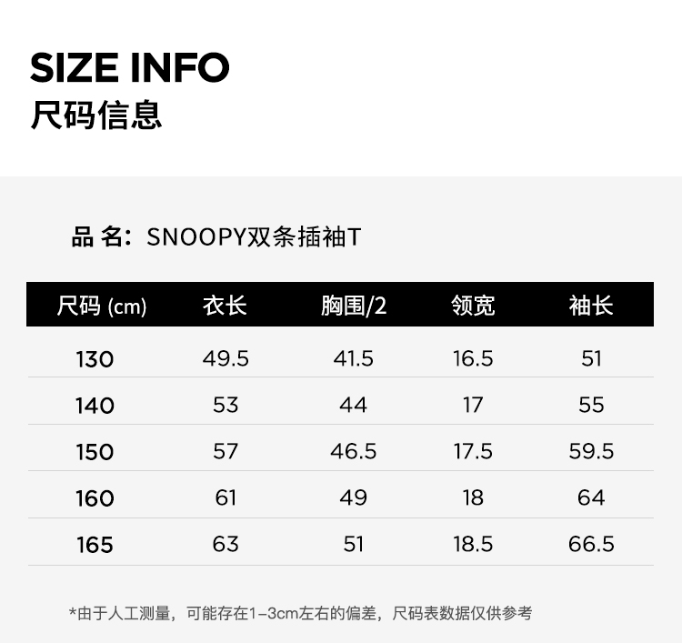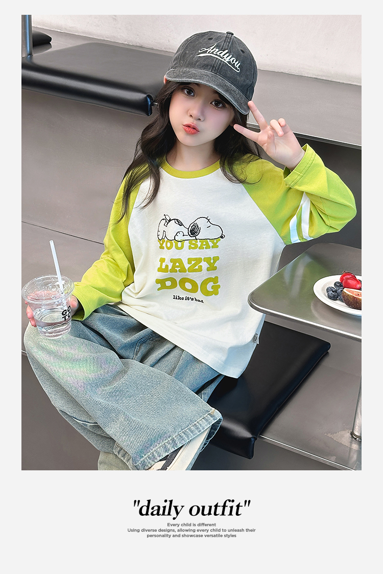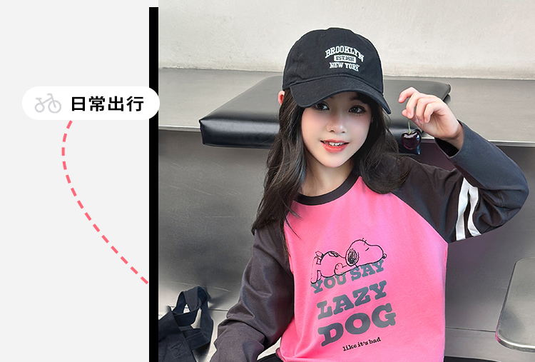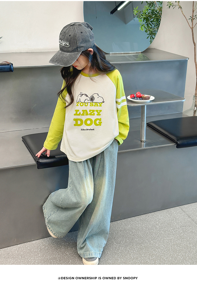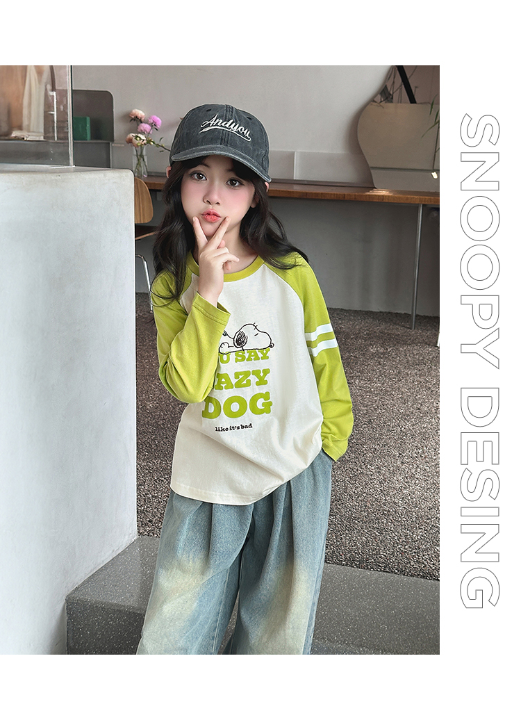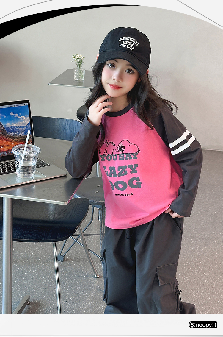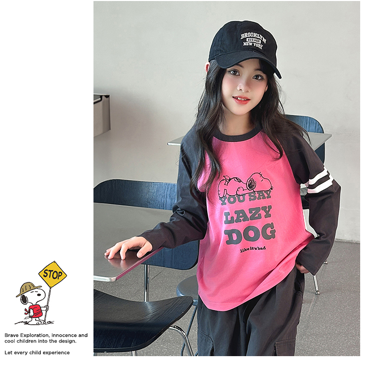 【130-165】【史努比】女童春秋款双条插袖长袖T恤