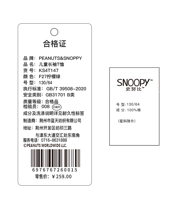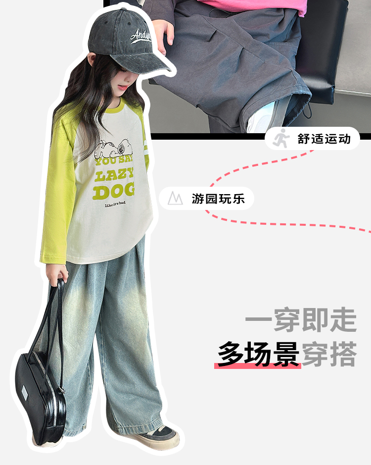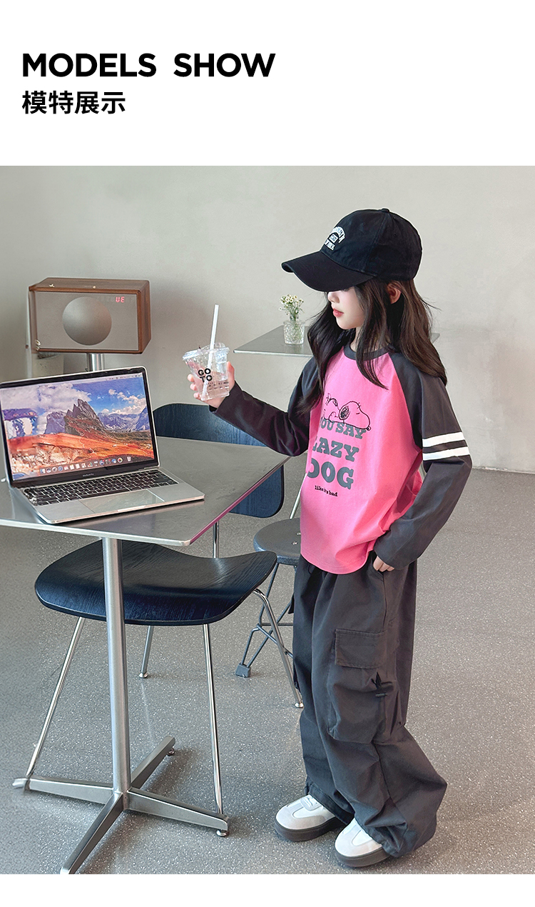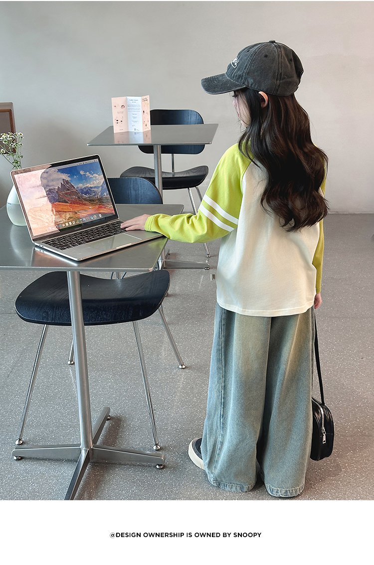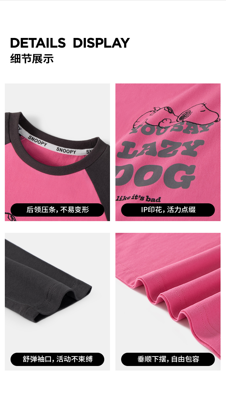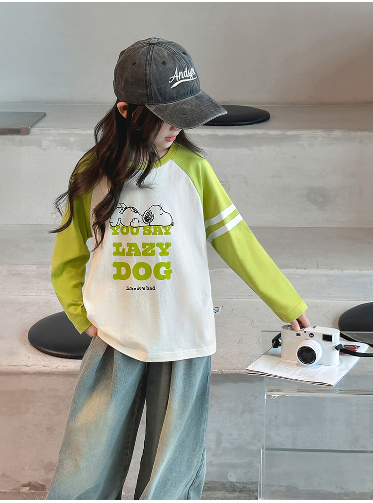 【130-165】【史努比】女童春秋款双条插袖长袖T恤