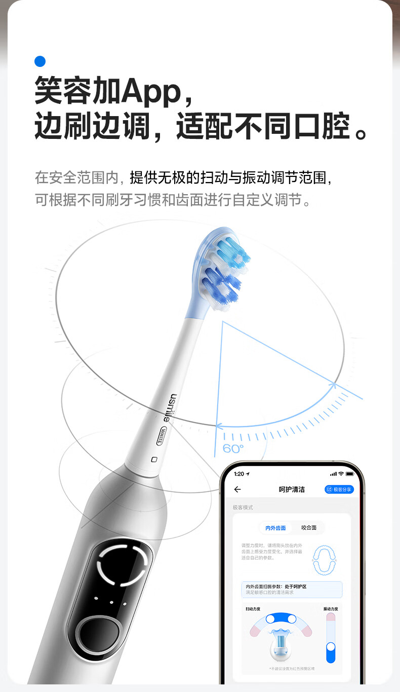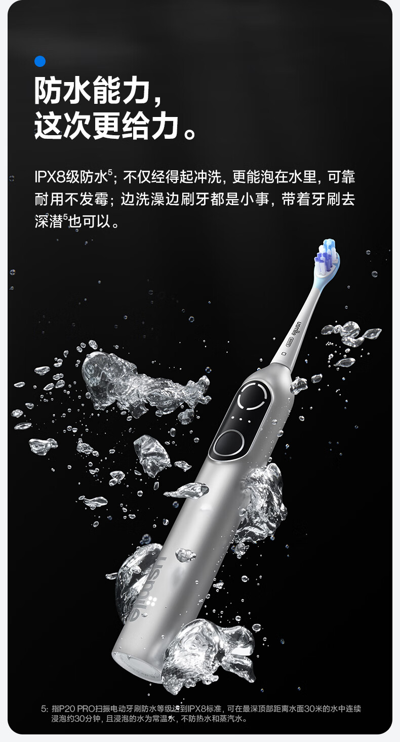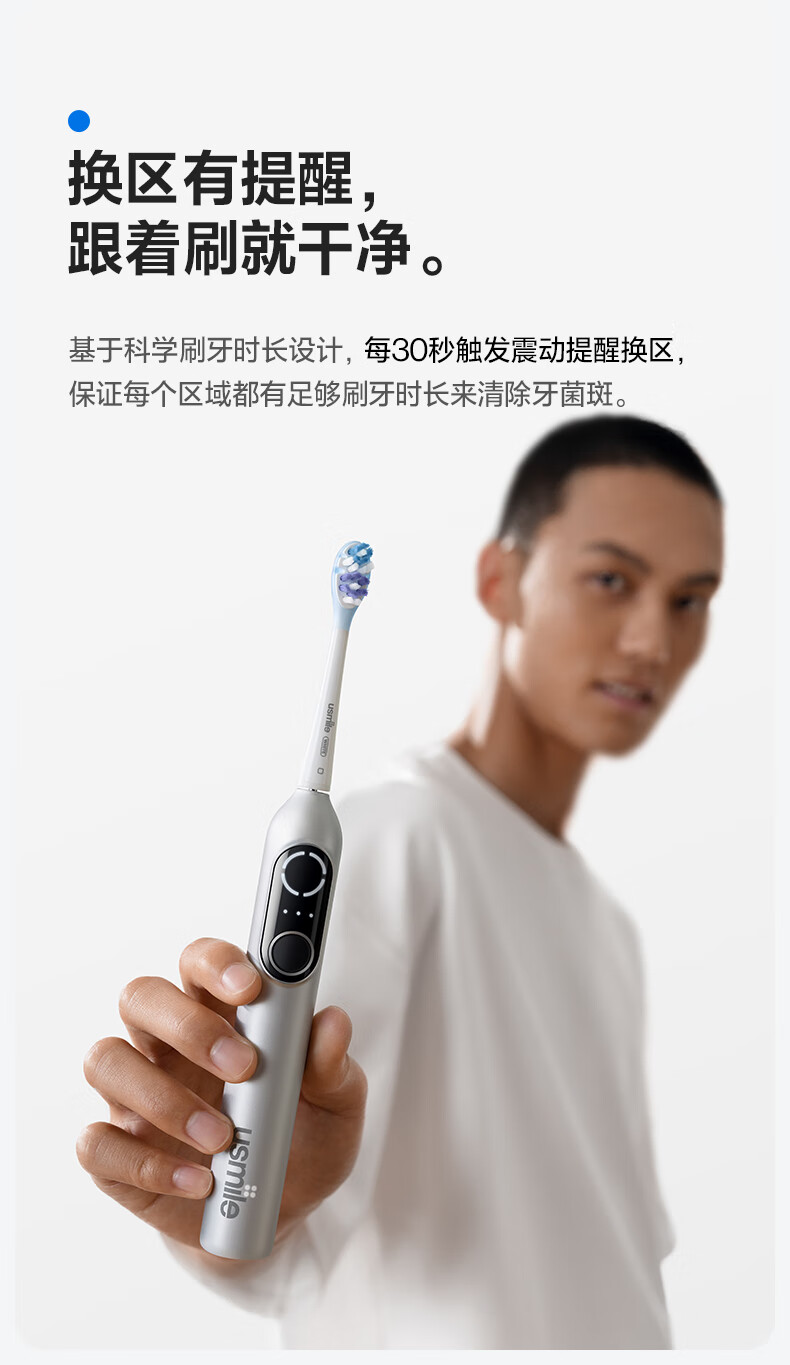 usmile笑容加电动牙刷智能 成人情侣礼物送女友 深度清洁护龈 P20 PRO冰河白