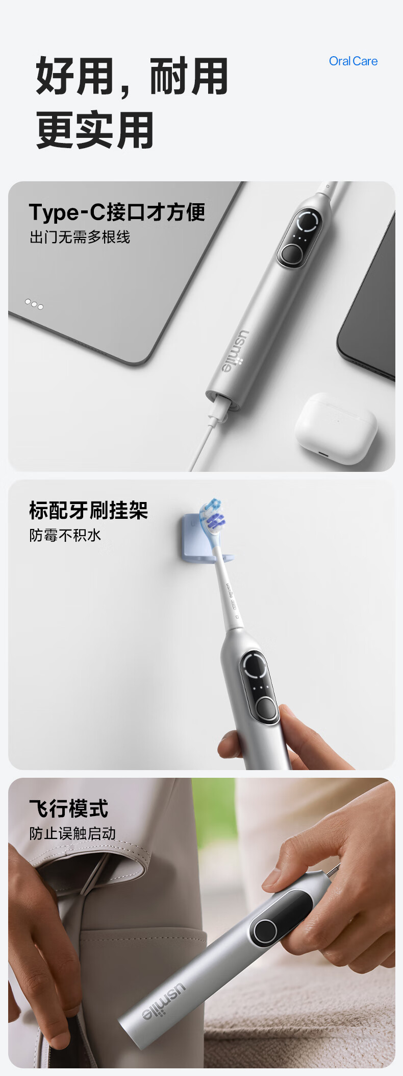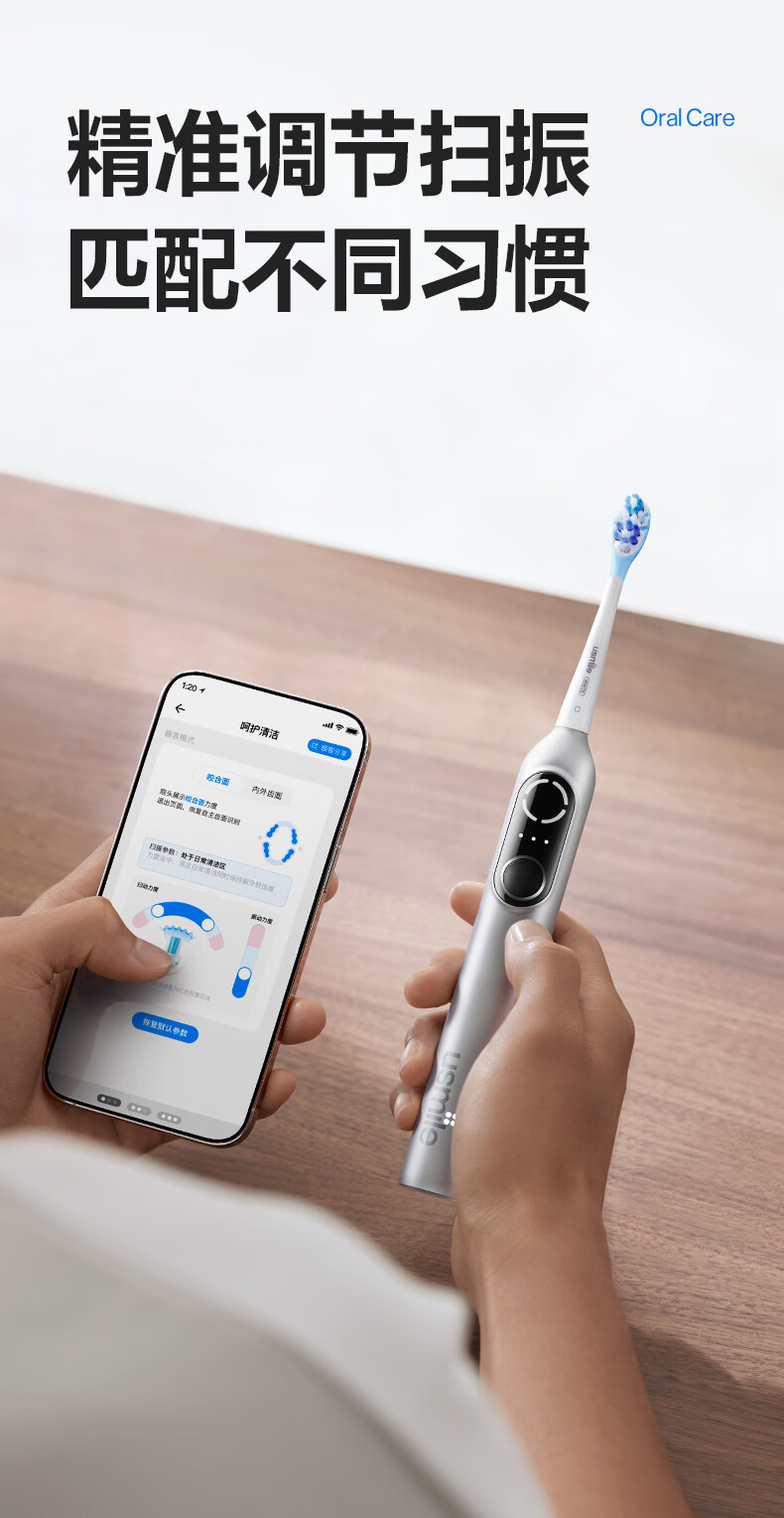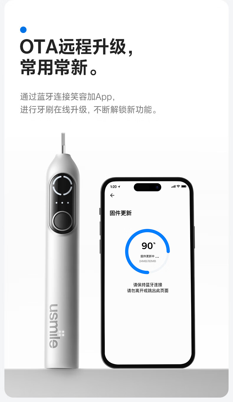 usmile笑容加电动牙刷智能 成人情侣礼物送女友 深度清洁护龈 P20 PRO冰河白