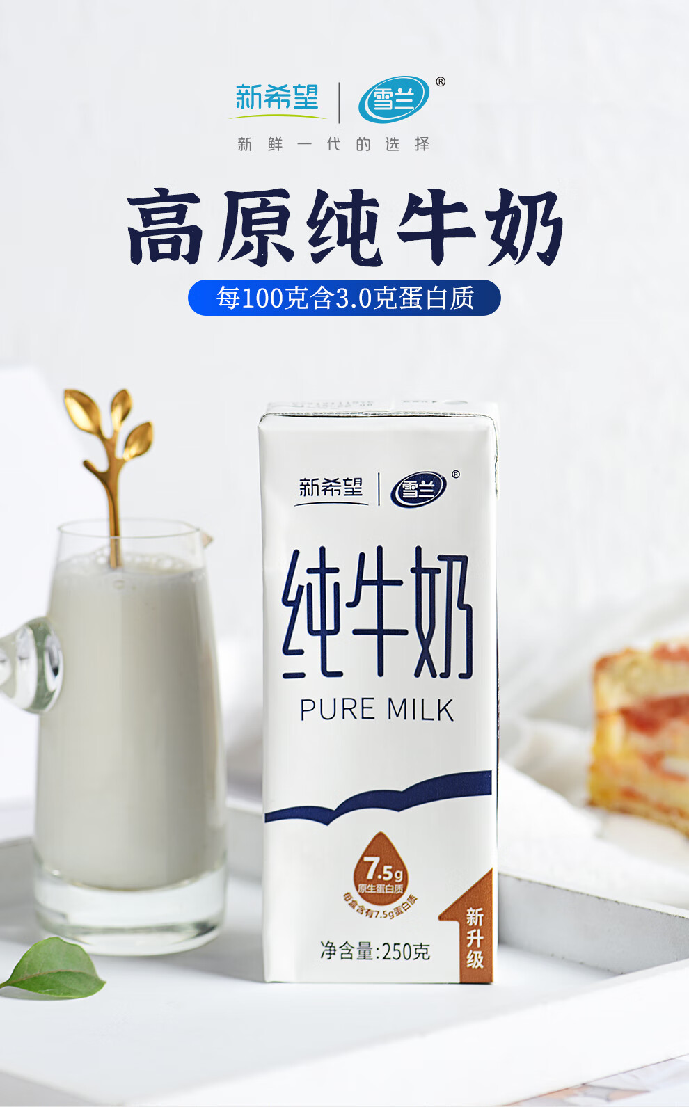 新希望苗条砖全脂纯牛奶早餐学生成人牛奶250g/盒3.0g/3.2g乳蛋白随机发 【1提装】全脂纯牛奶16盒