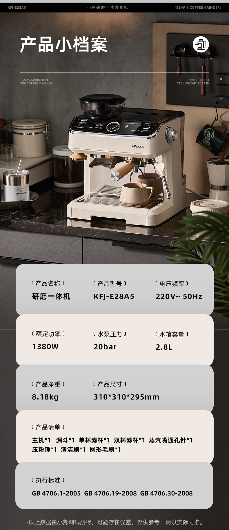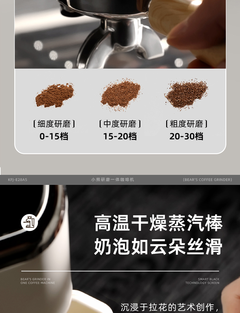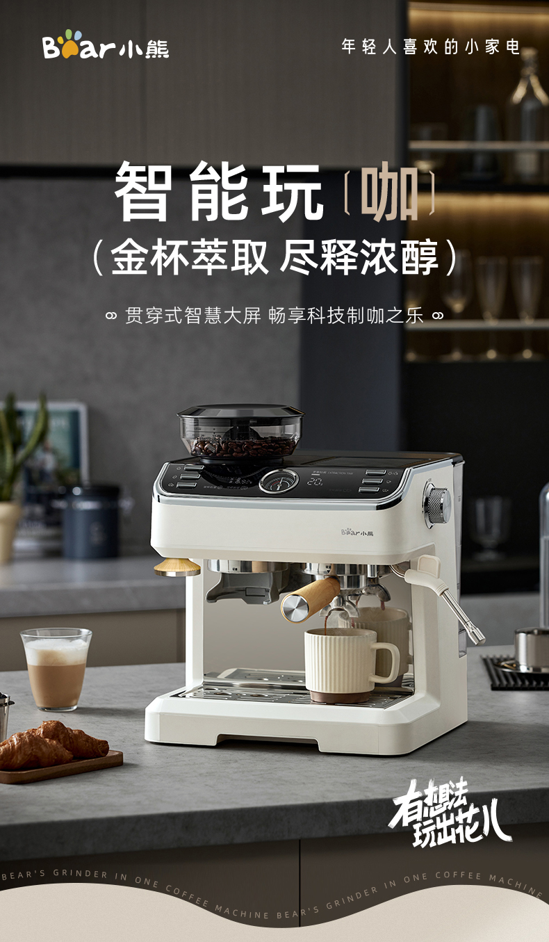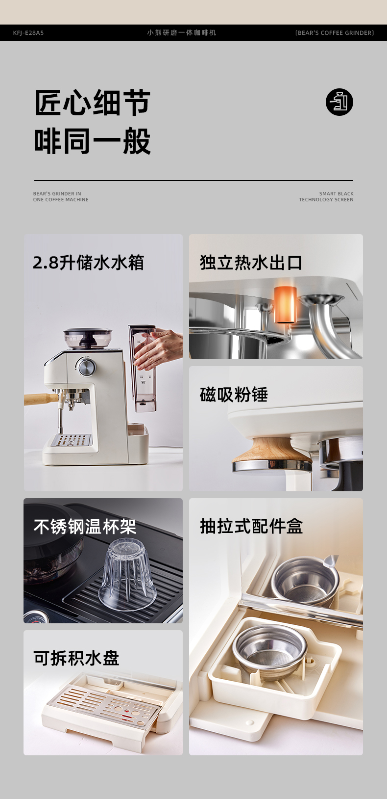 【小程序】小熊(Bear)咖啡机 意式半自动家用咖啡机 研磨一体机 现磨咖啡豆手动奶泡 KFJ-E28A5