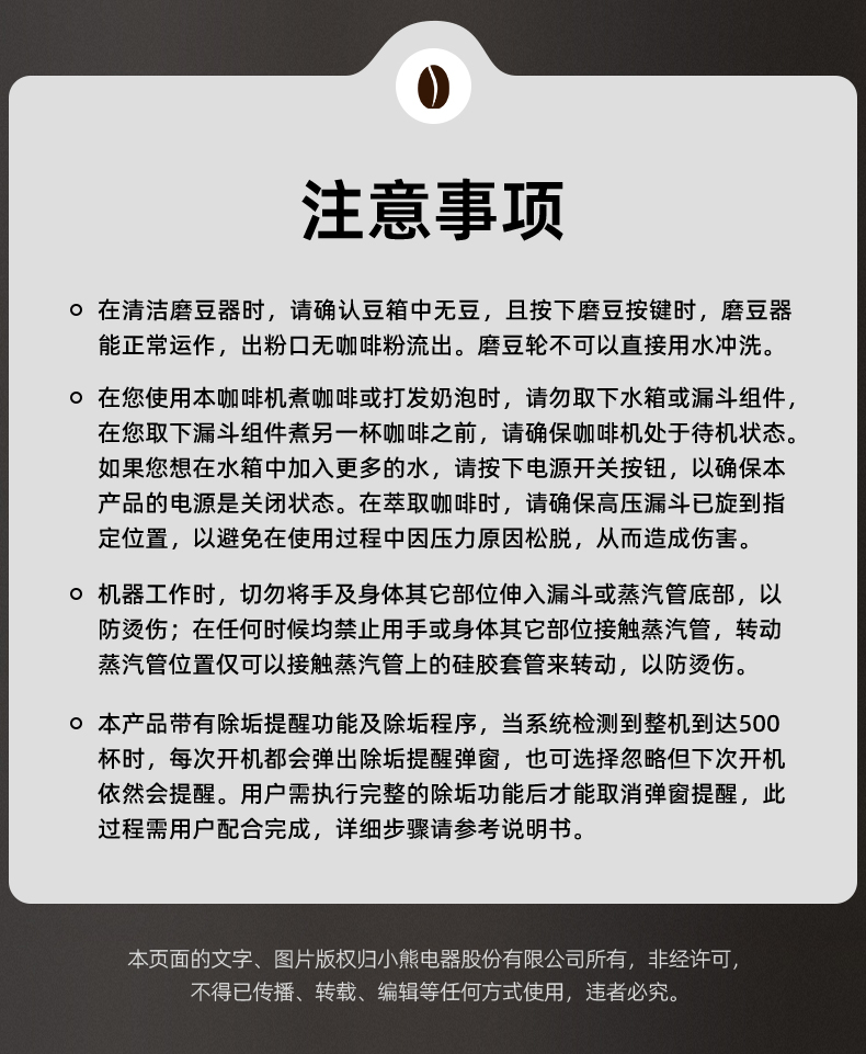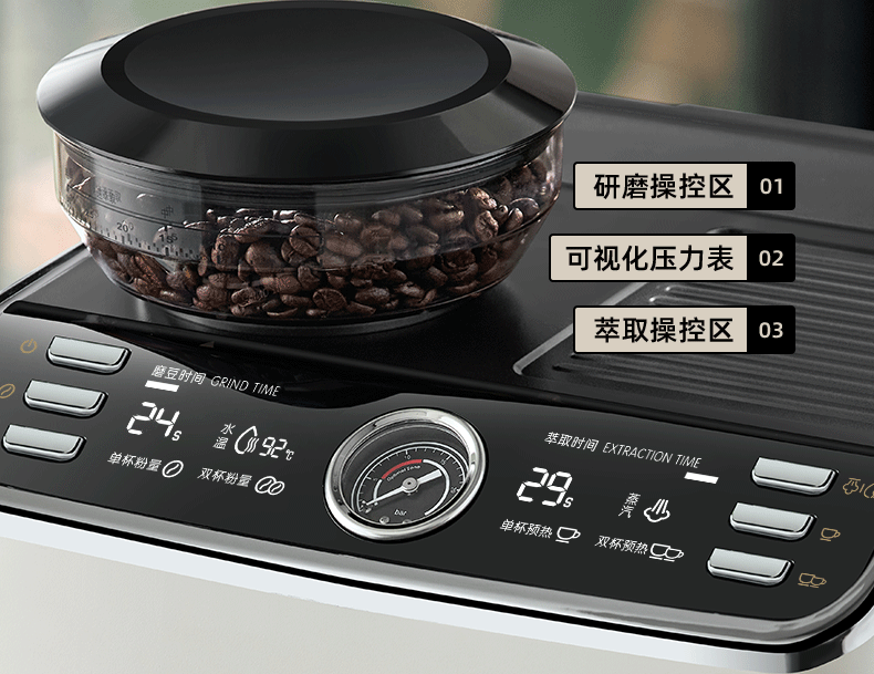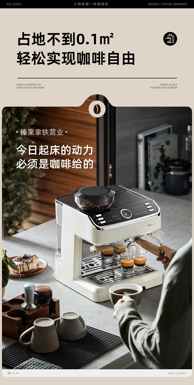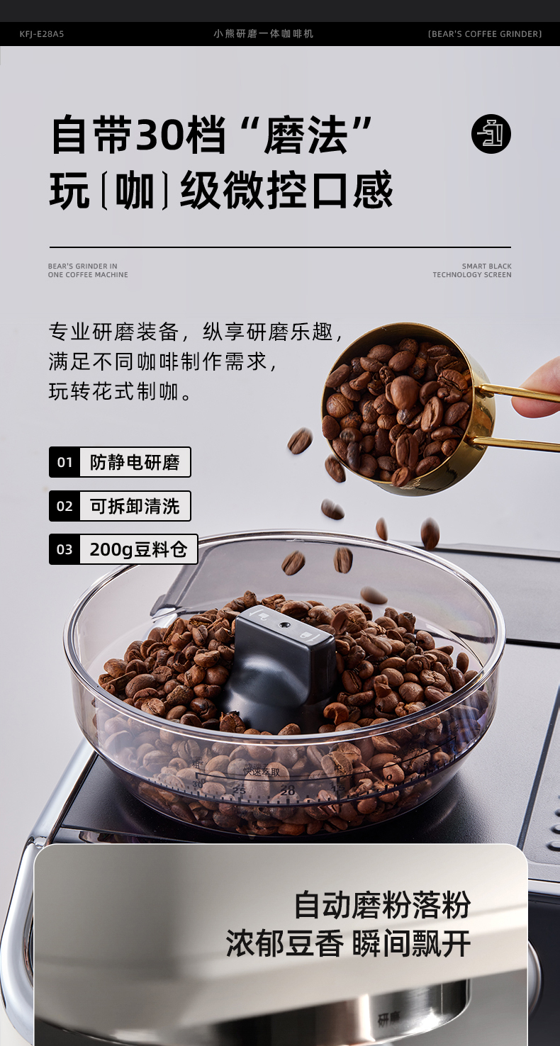 【小程序】小熊(Bear)咖啡机 意式半自动家用咖啡机 研磨一体机 现磨咖啡豆手动奶泡 KFJ-E28A5