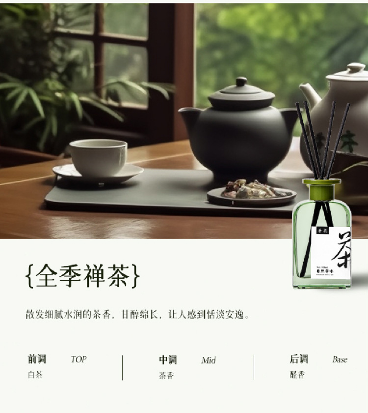 禅茶酒店香薰室内持久东方无火香熏桂花龙井厕所除臭香水摆件