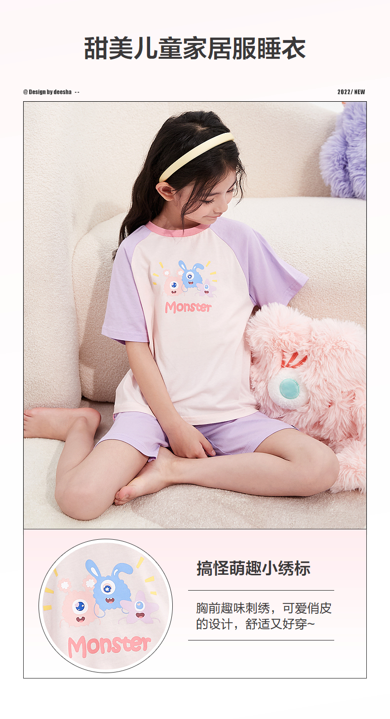 笛莎童装女童家居服2023年夏季新款中大童时尚百搭居家儿童睡衣
