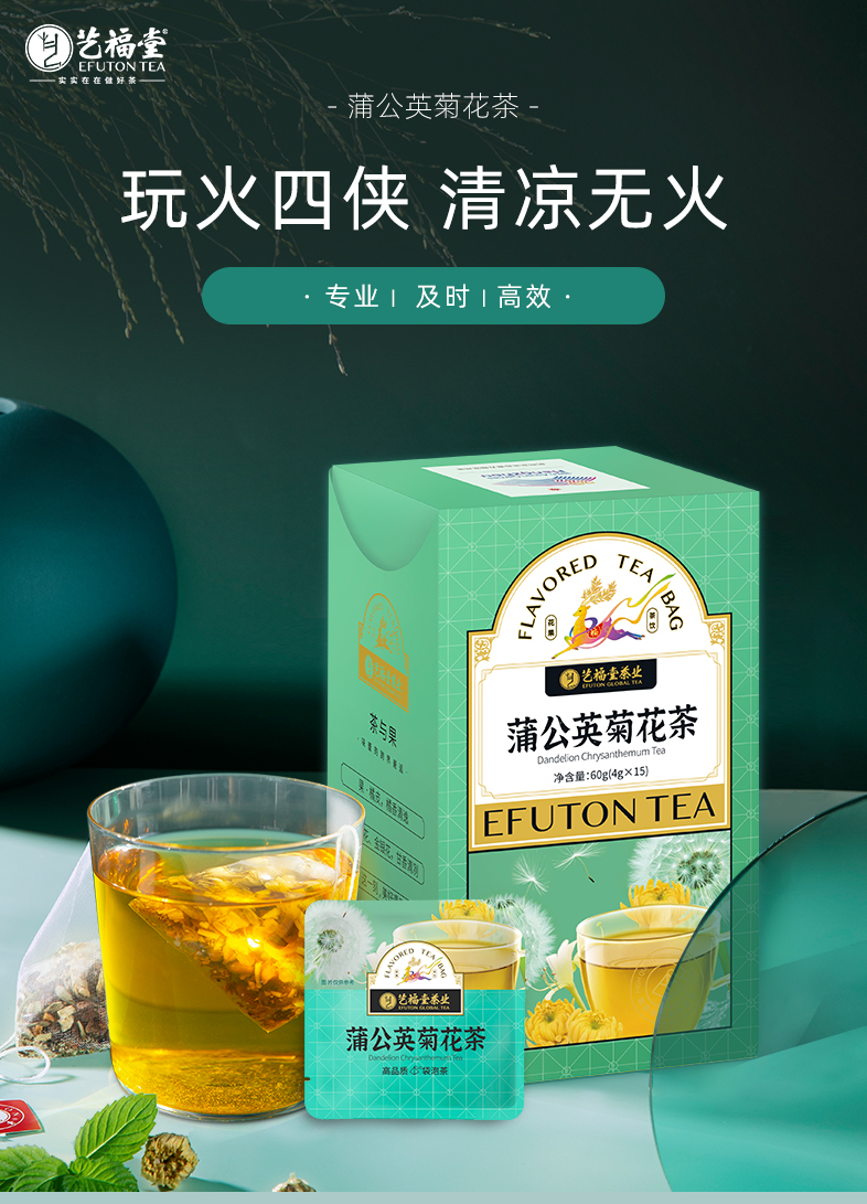 艺福堂 清透茶 蒲公英根菊花茶 60g/盒