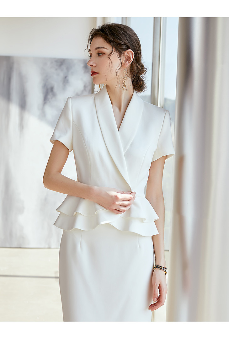 法小曼*子珍专款/通勤风黑色毛呢西装套装女修身收腰呢子职业套裙气质秋冬款
