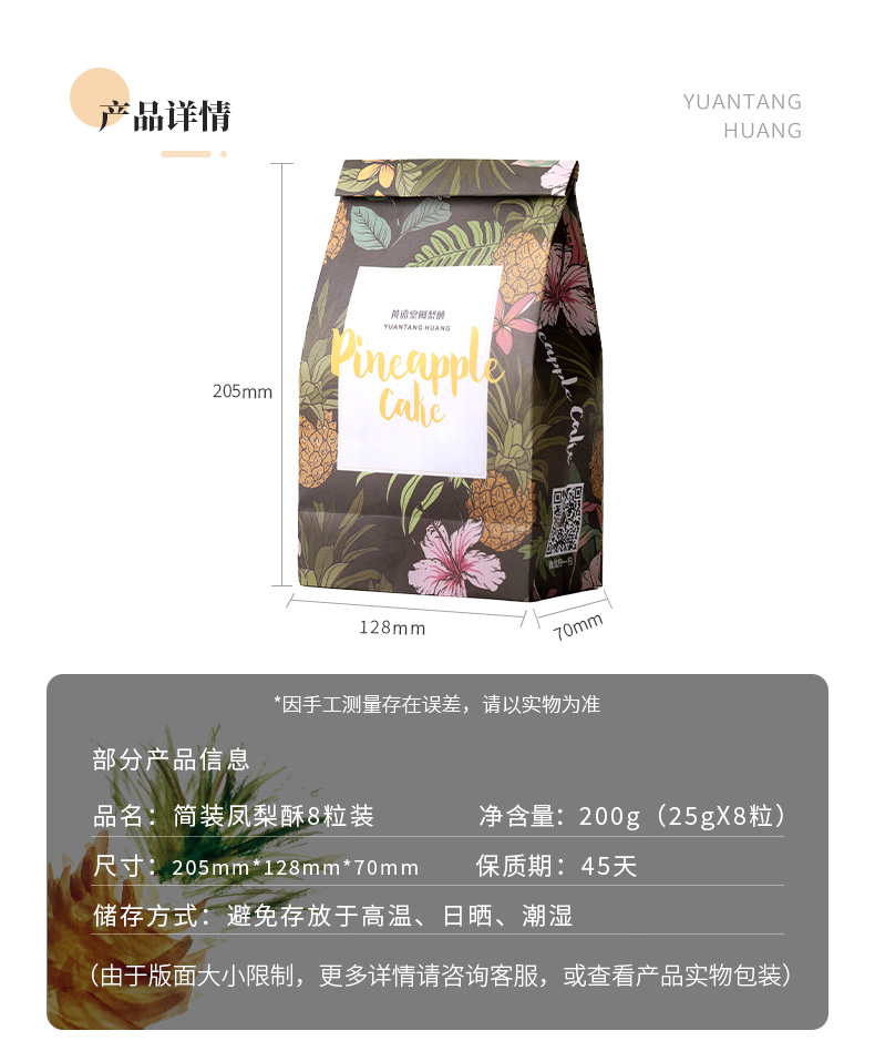 【老字号】黄远堂 简装原味凤梨酥(8粒装)200g/200g*3