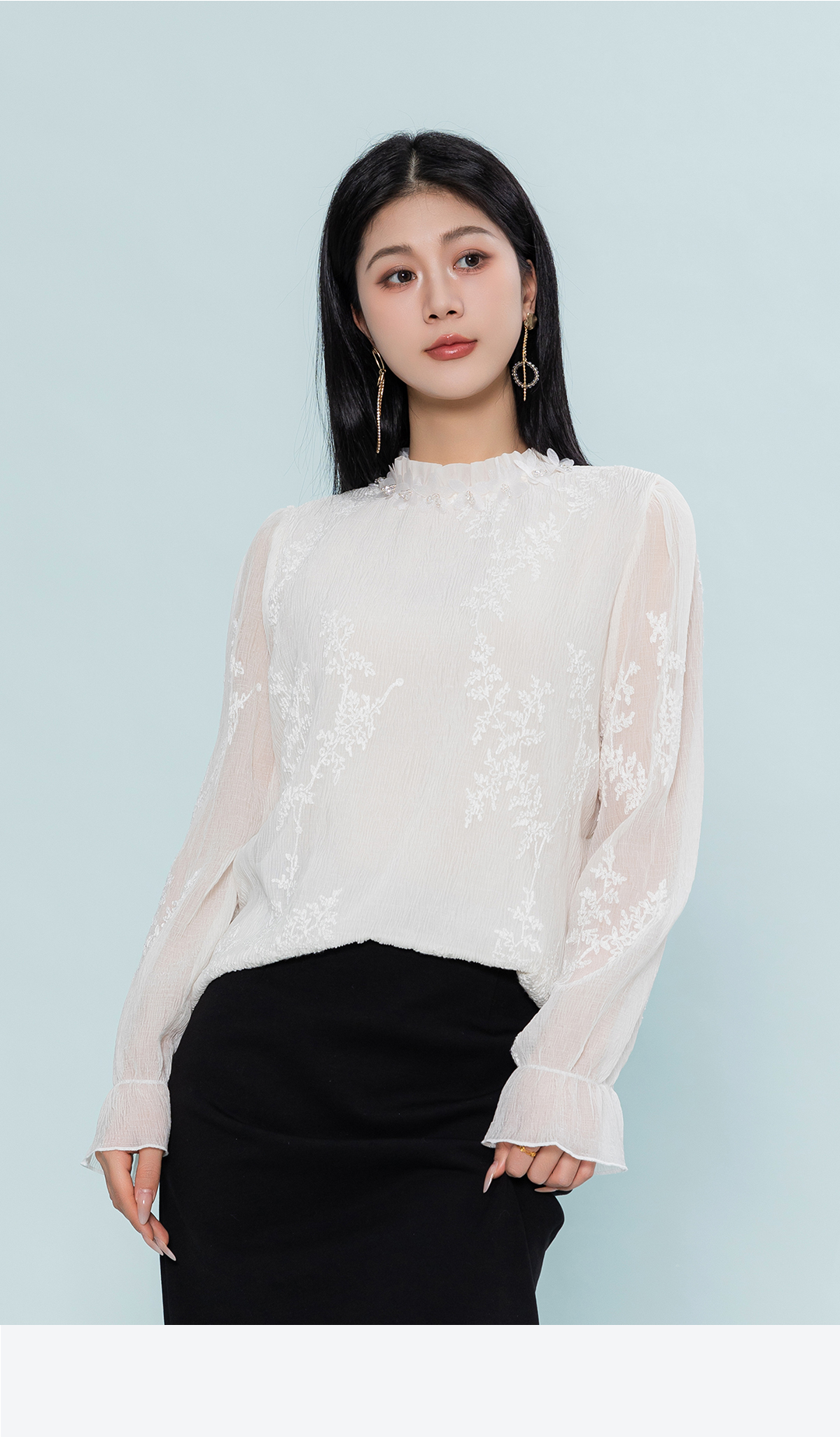 夏上新木耳边立领喇叭袖显瘦仙气衬衣1262010 商品图3