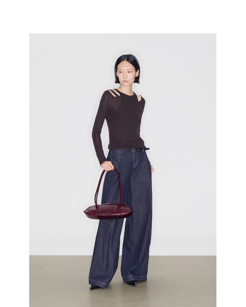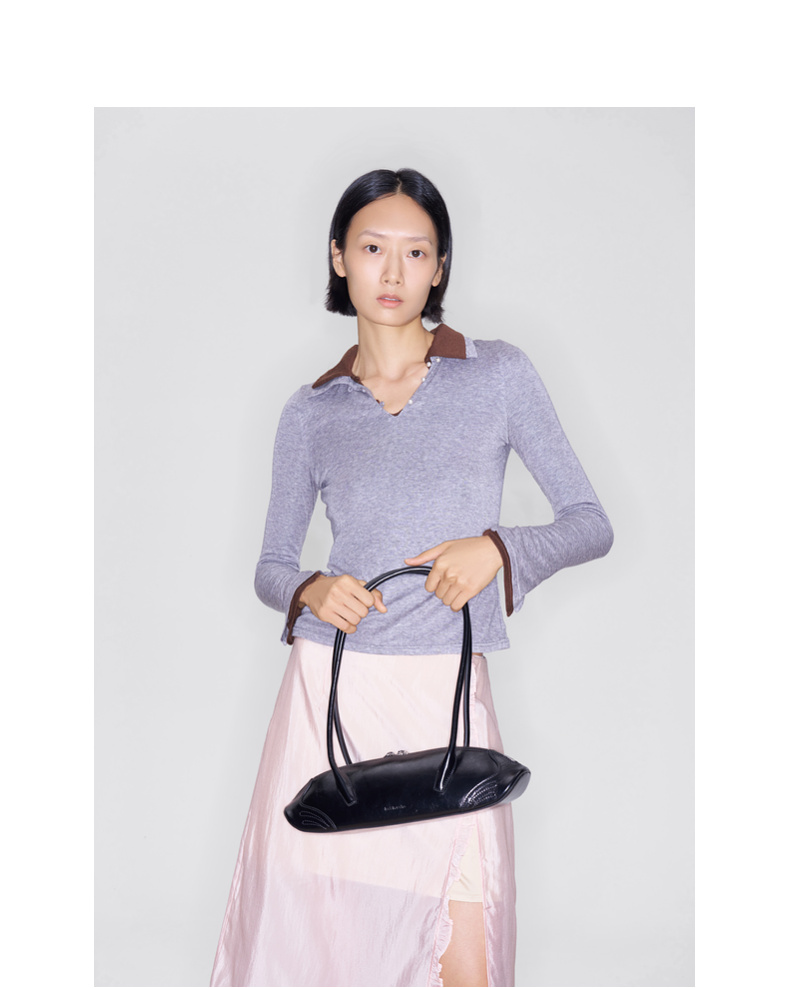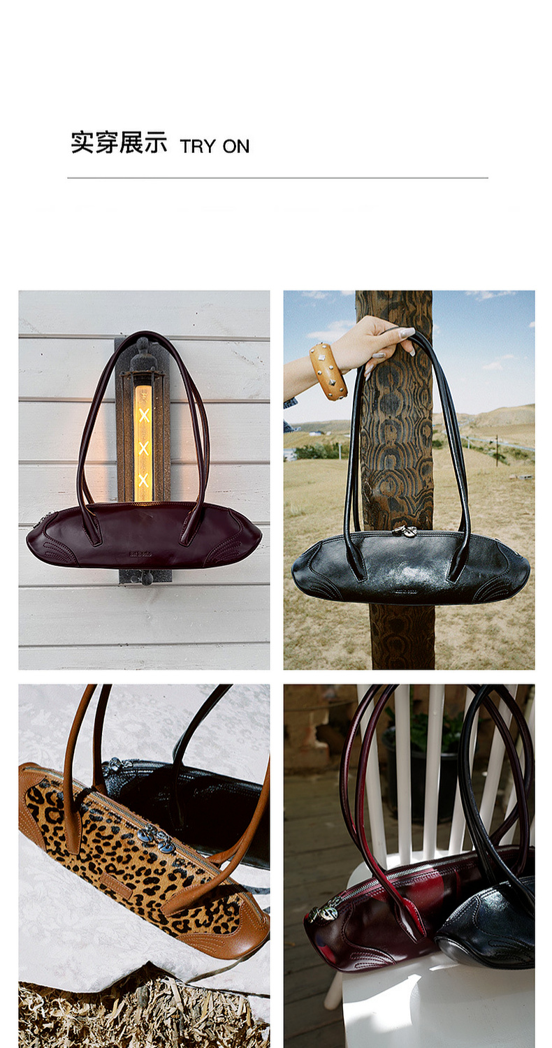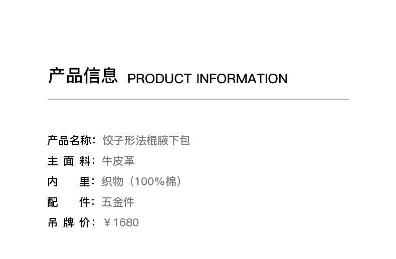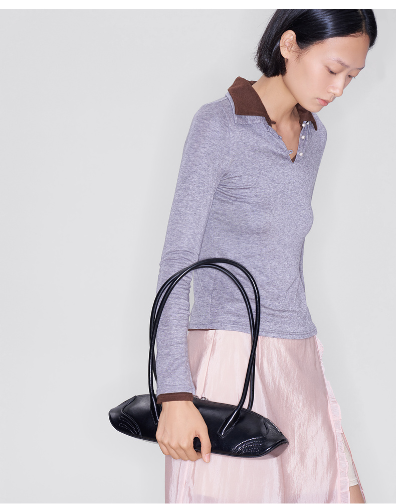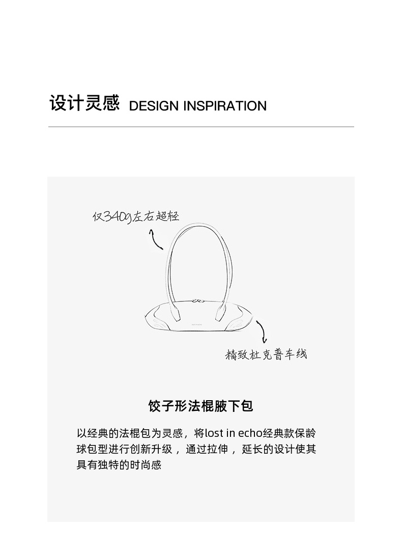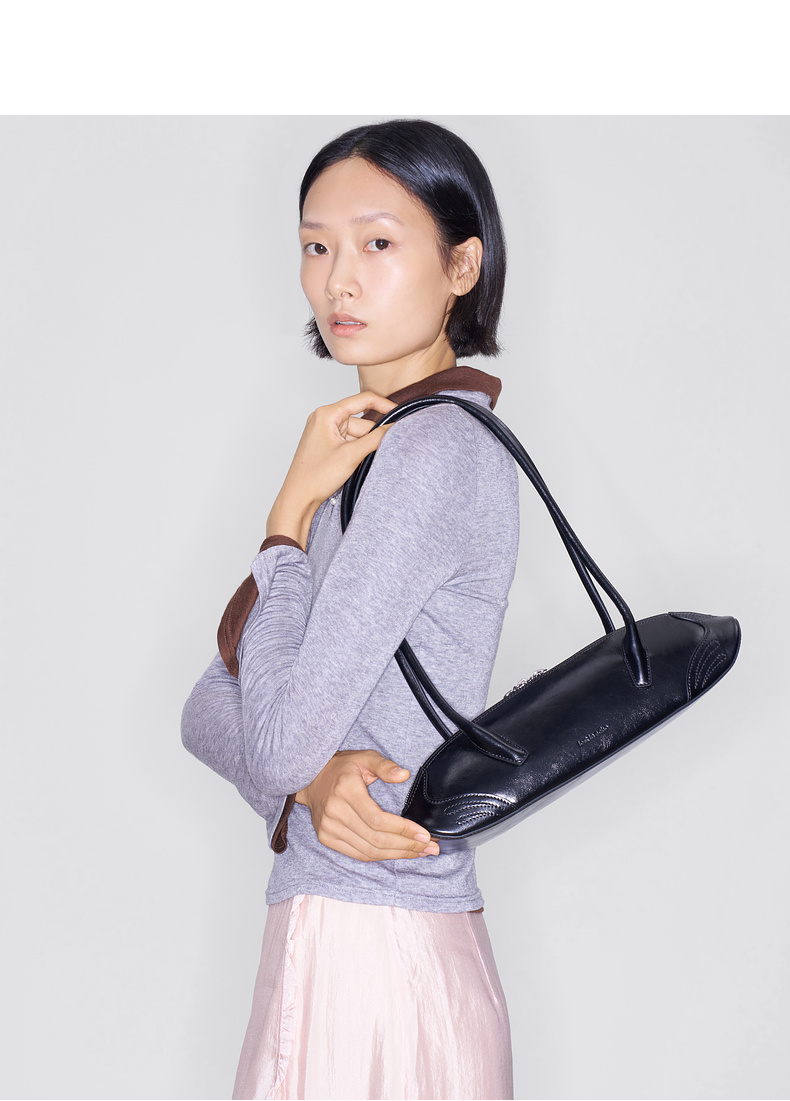 lost in echo2025早秋新款轻便质感牛皮趣味饺子形法棍单肩腋下包