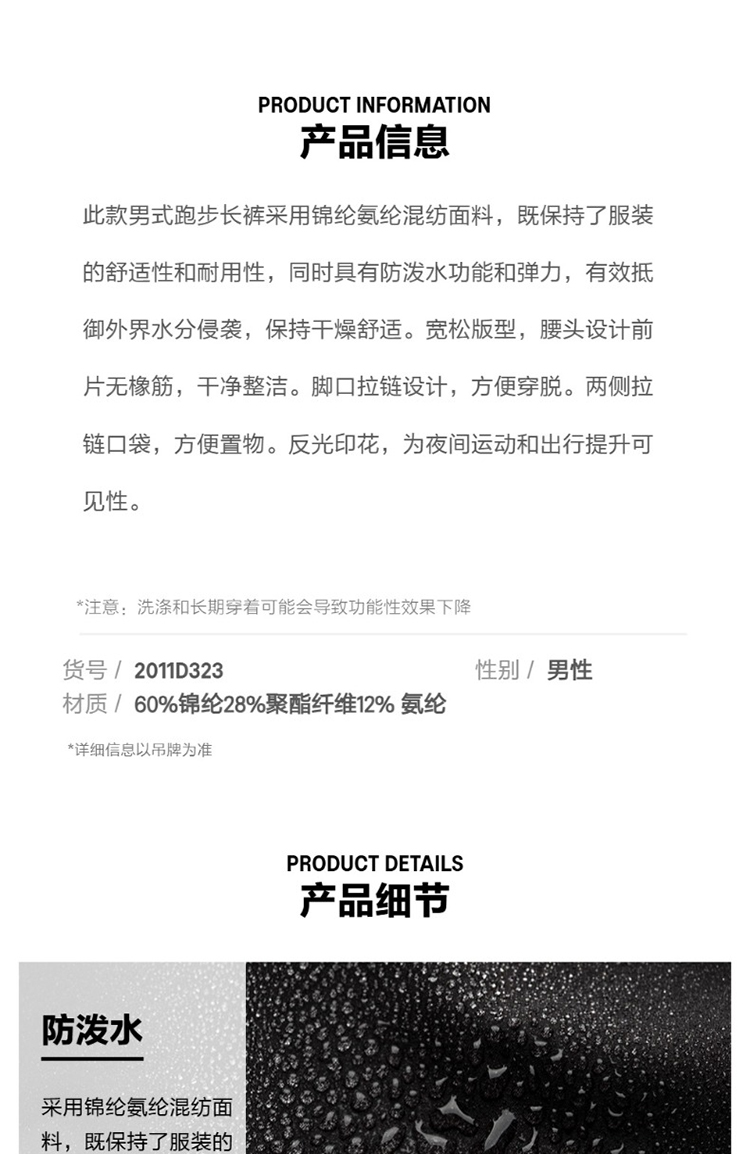 ASICS亚瑟士 男款跑步防泼水运动长裤