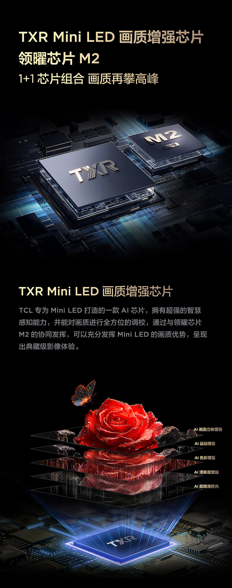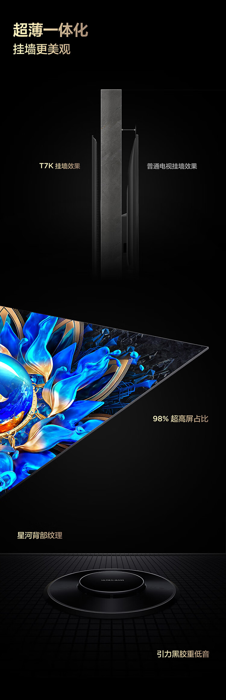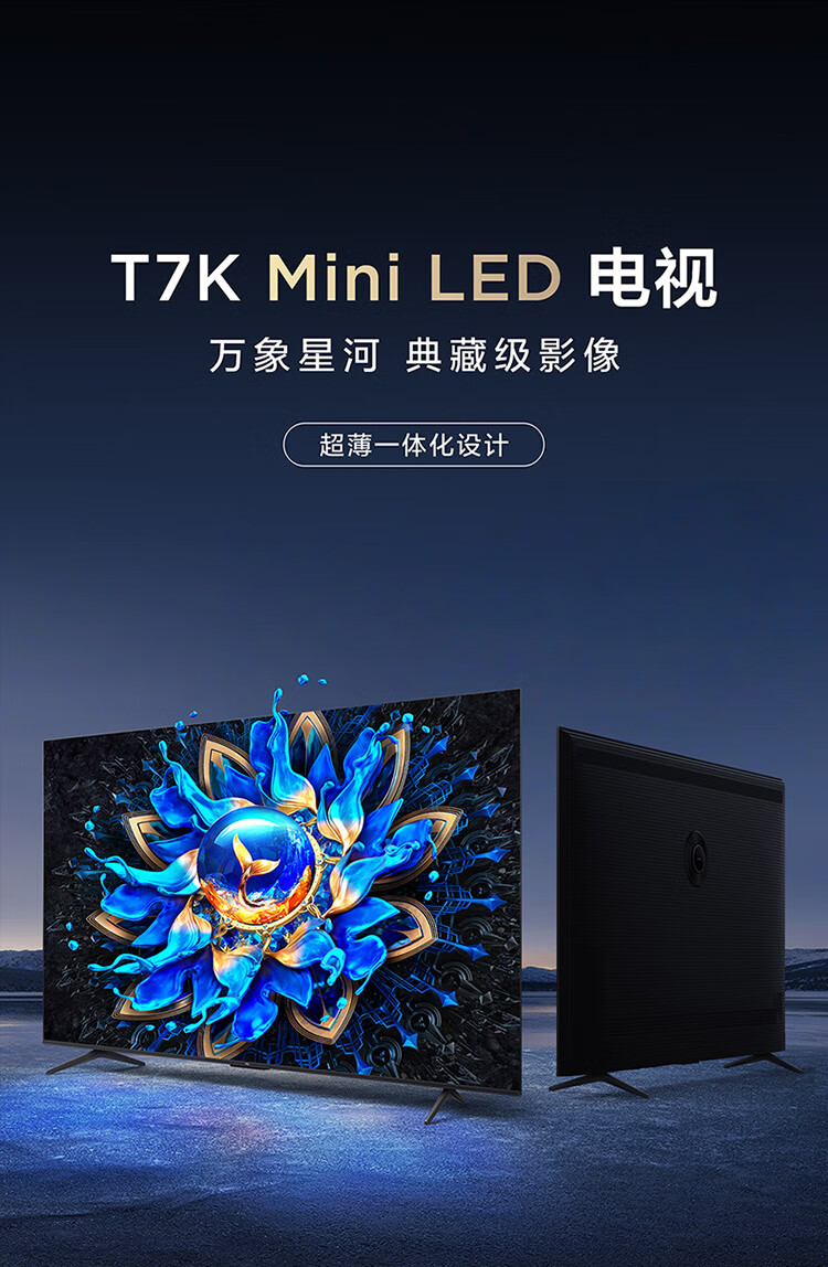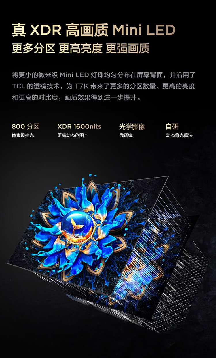 TCL电视 85T7K 85英寸 Mini LED 800分区 XDR 1600nits QLED量子点 超薄 客厅液晶智能平板游戏电视机