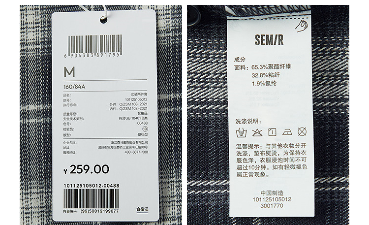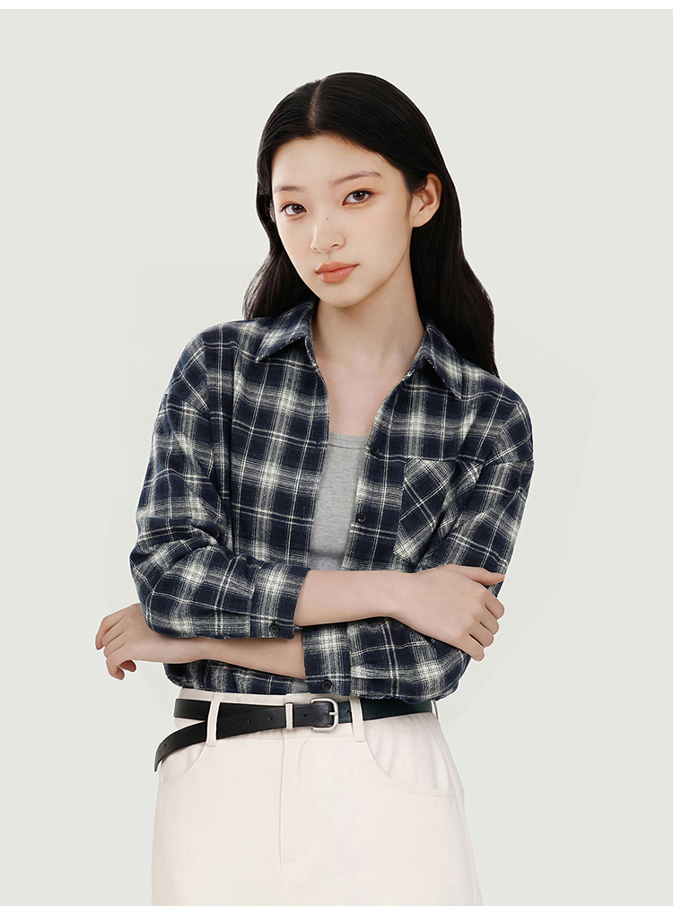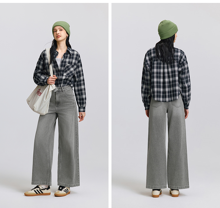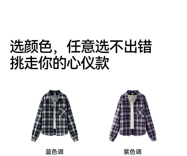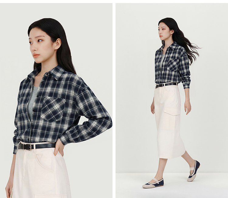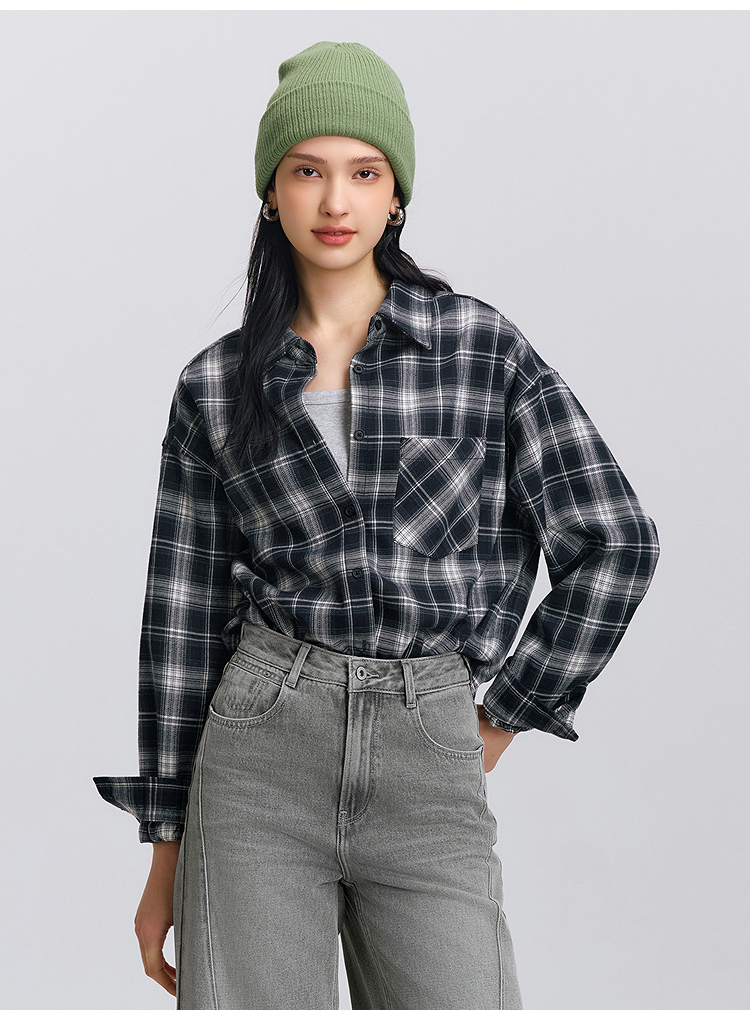 森马长袖衬衫女春季短背心宽松格纹衬衣复古港风盐系小个子两件套