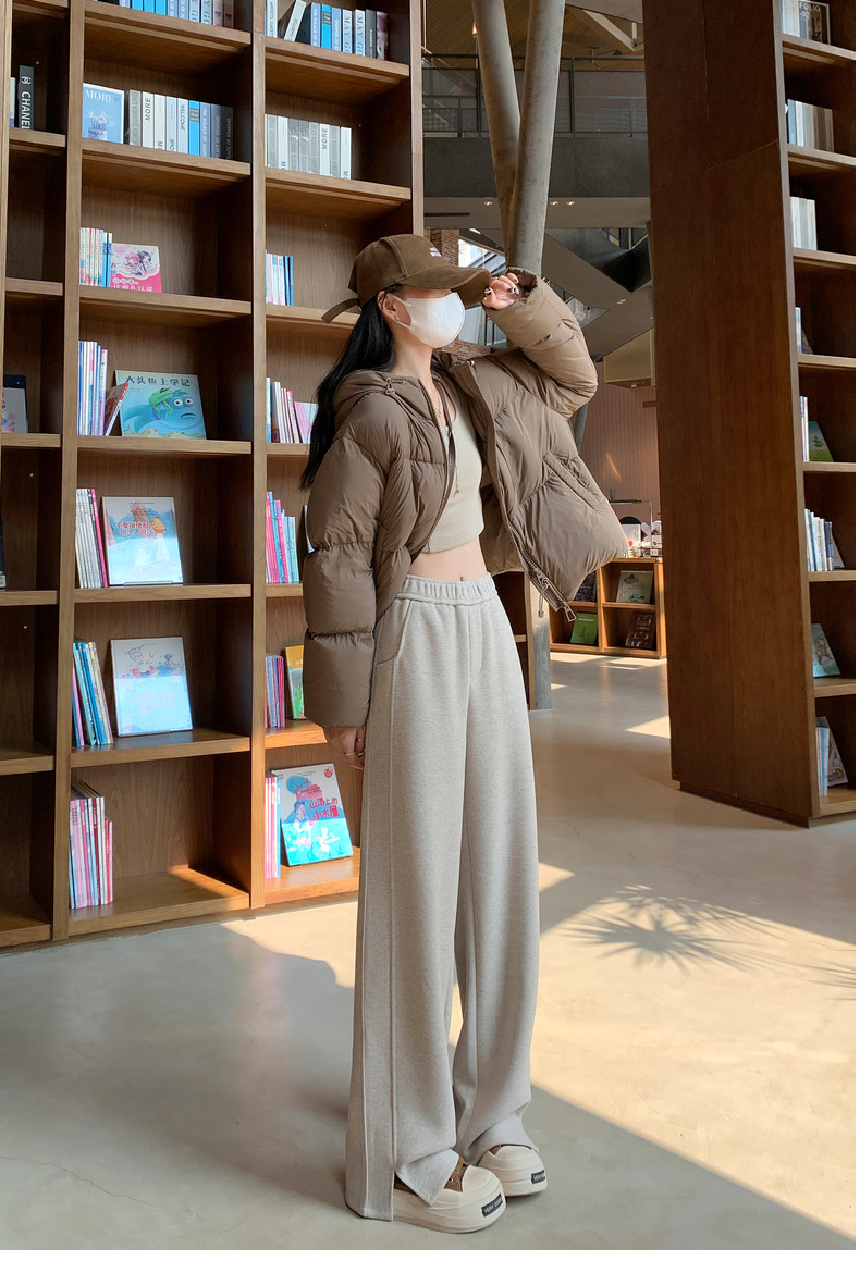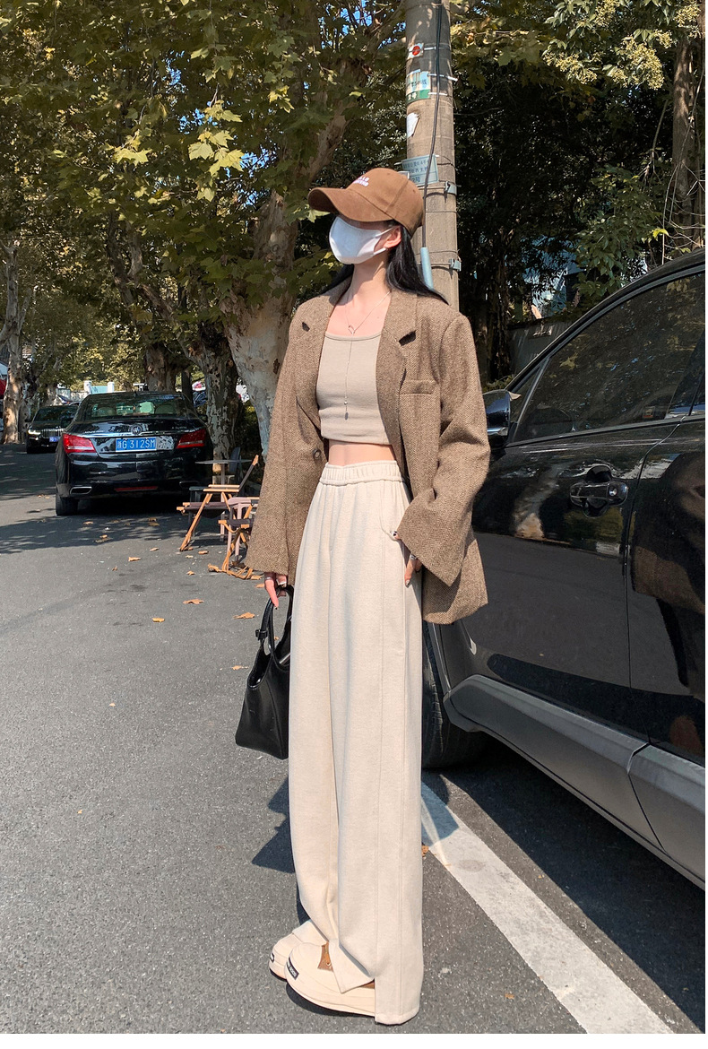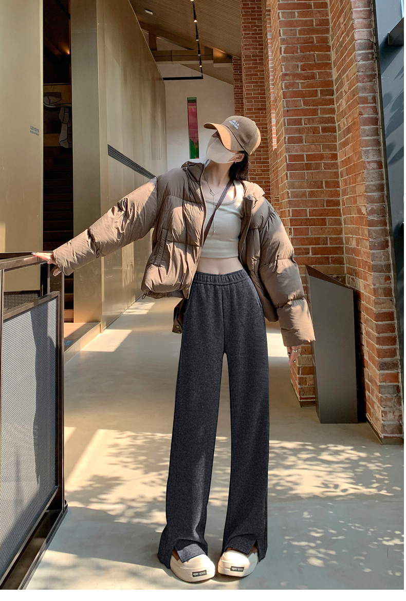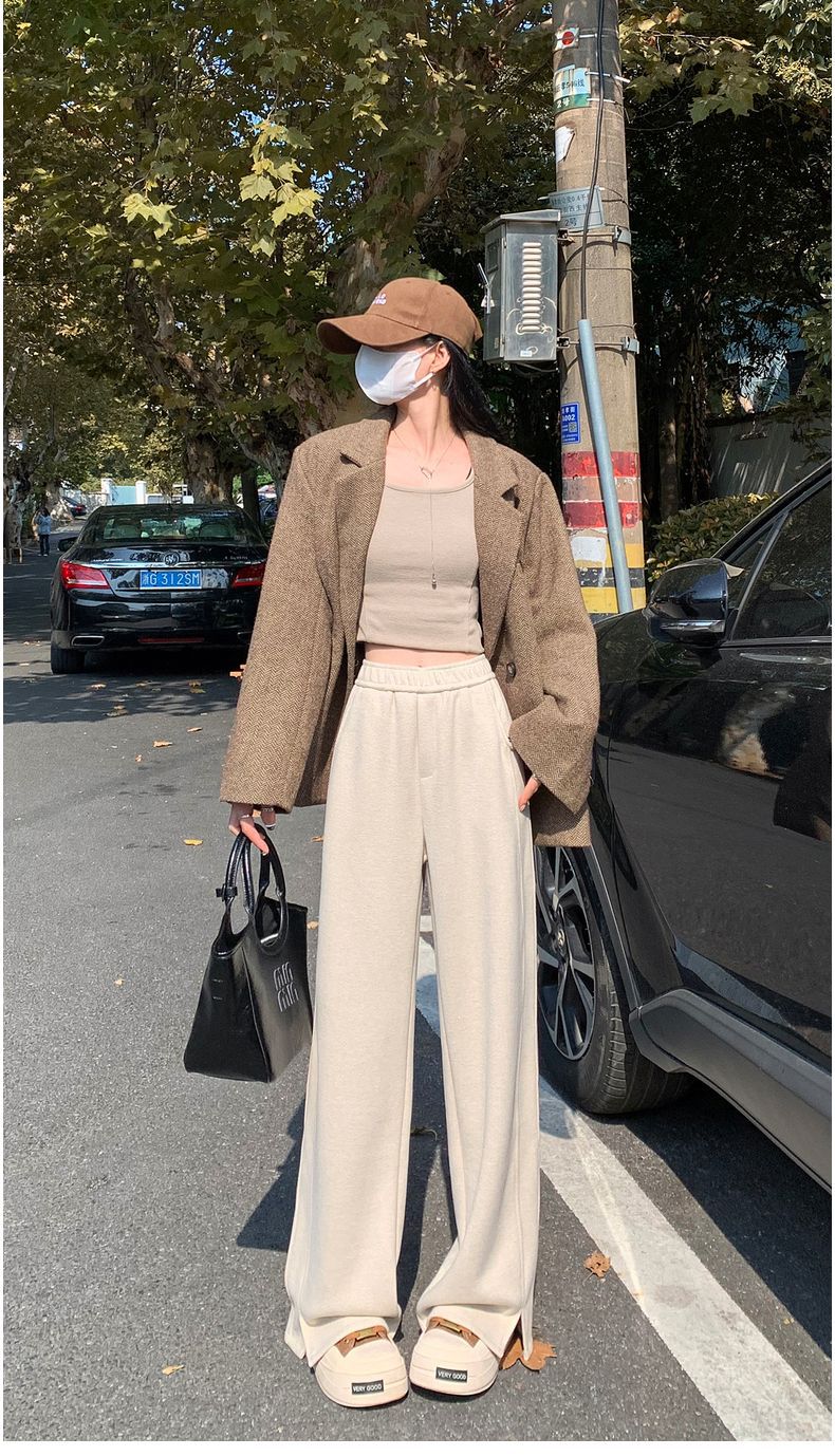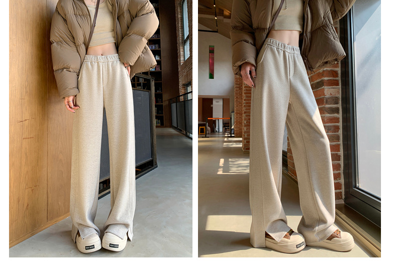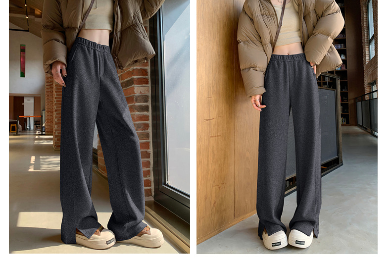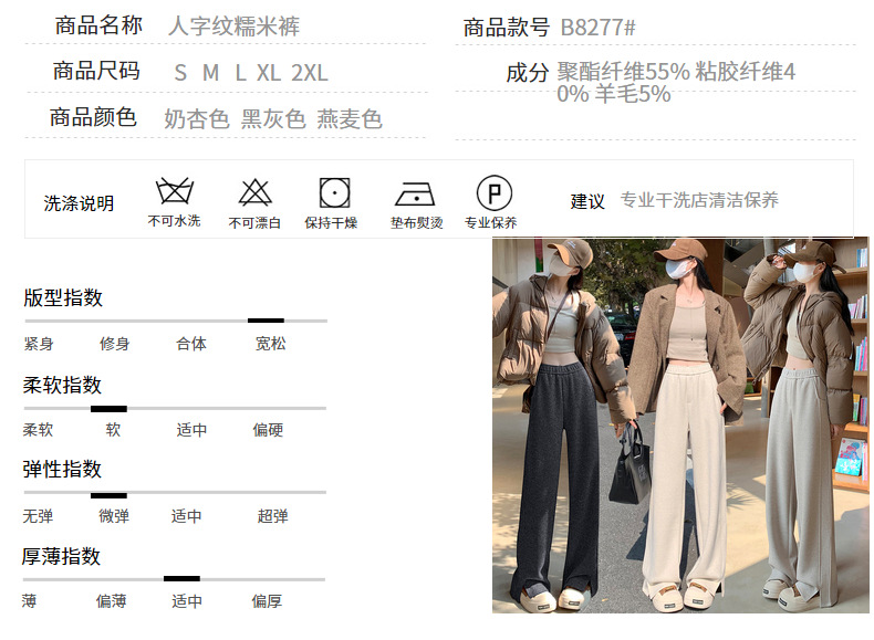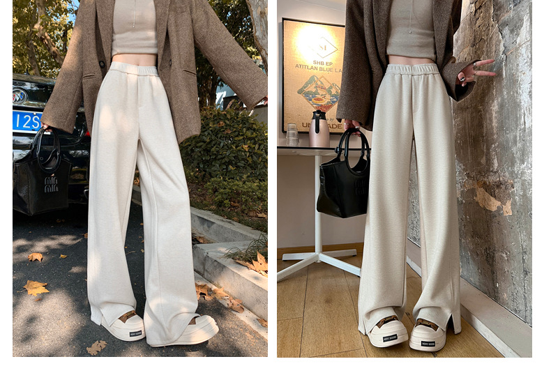 秋冬醋酸羊毛人棉开叉直筒裤 加厚休闲垂感糯米休闲裤