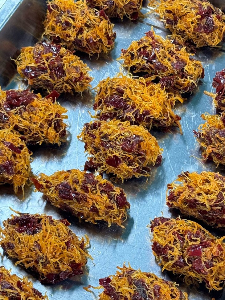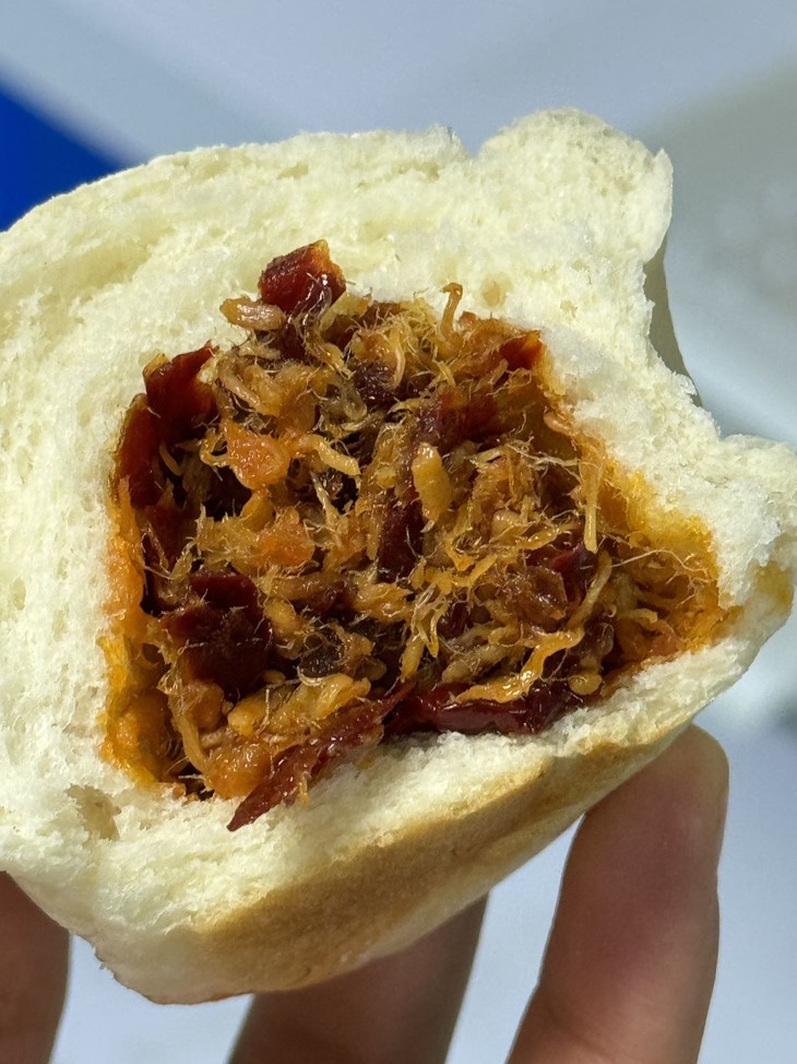 软糯的米面包裹着新疆辣皮子,辣味温和带果香,混着酥脆猪肉松,咸香微辣!真的只是微微辣哦!新疆辣皮子的特点是肉厚吃起来软糯,带回甜,不是刺激性很强的那种辣。偶有红油微微渗出(介意慎拍),但油润不噎,越嚼越上头。
