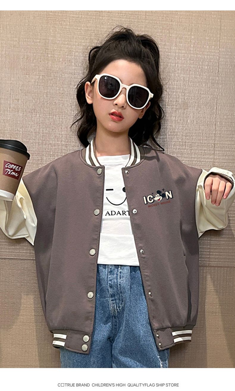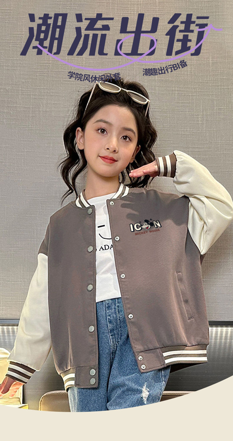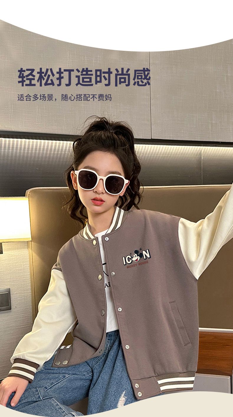 迪士尼女童棒球服外套春秋2025新款洋气儿童夹克女大童上衣春装潮