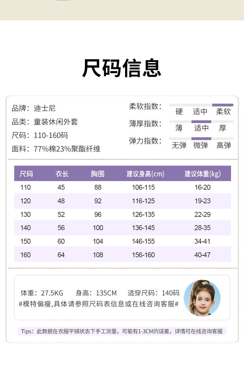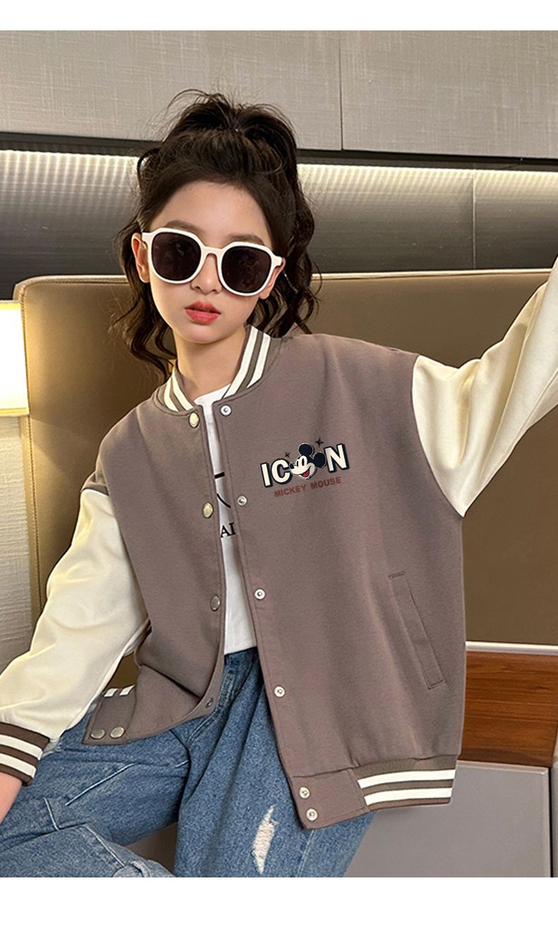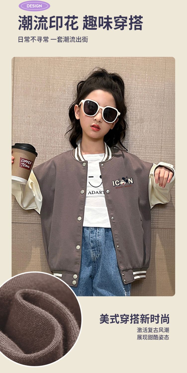 迪士尼女童棒球服外套春秋2025新款洋气儿童夹克女大童上衣春装潮