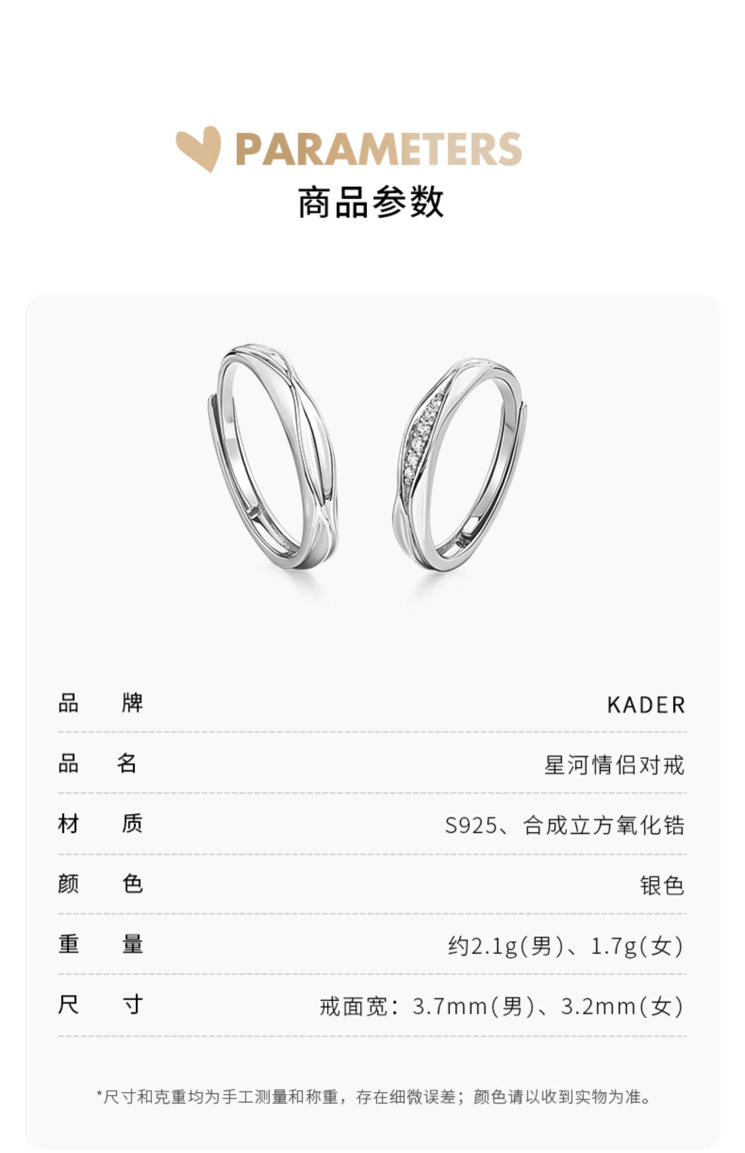 卡蒂罗星河情侣对戒纯银戒指一对男女款小众设计520礼物送女友