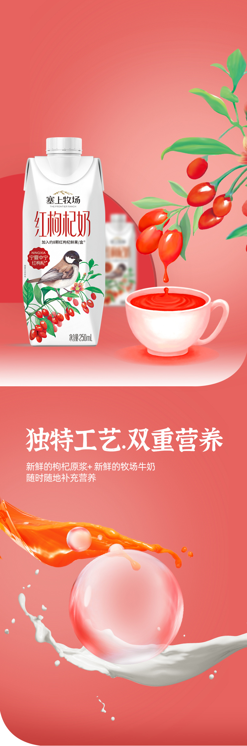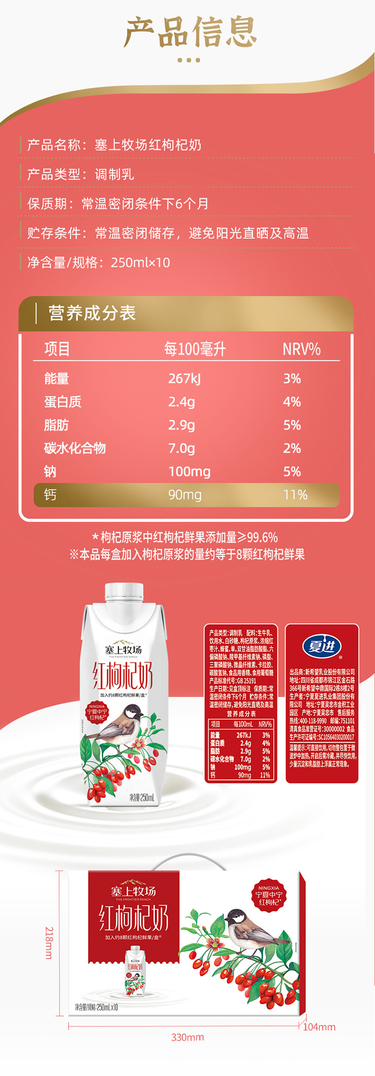【新春好友礼赠】夏进 塞上牧场红枸杞奶250ml×10瓶整箱