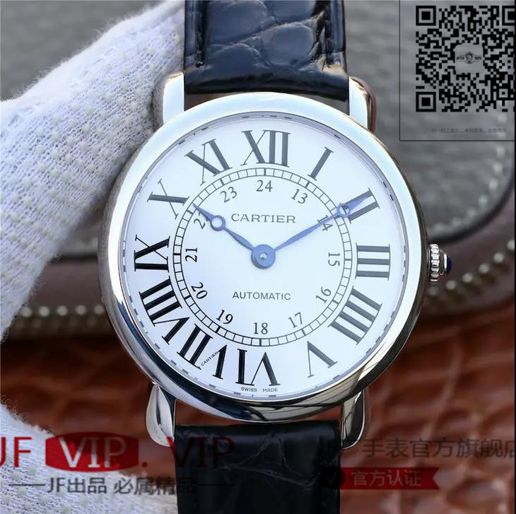 TW卡地亚CartierRONDE LOUIS CARTIER系列机械男表:chao薄,直径40厚度8MM,原装卡地亚9916MC型工作坊精制自动上链机械机芯