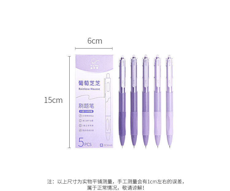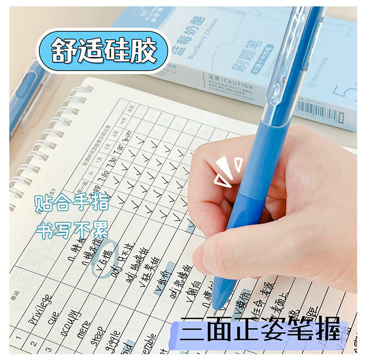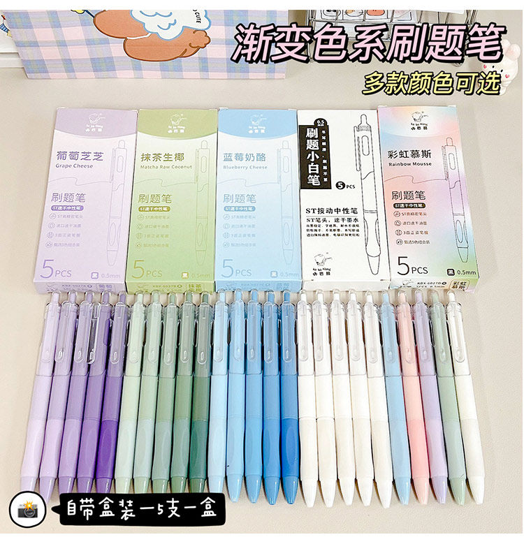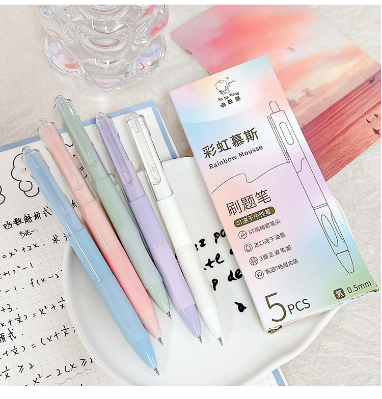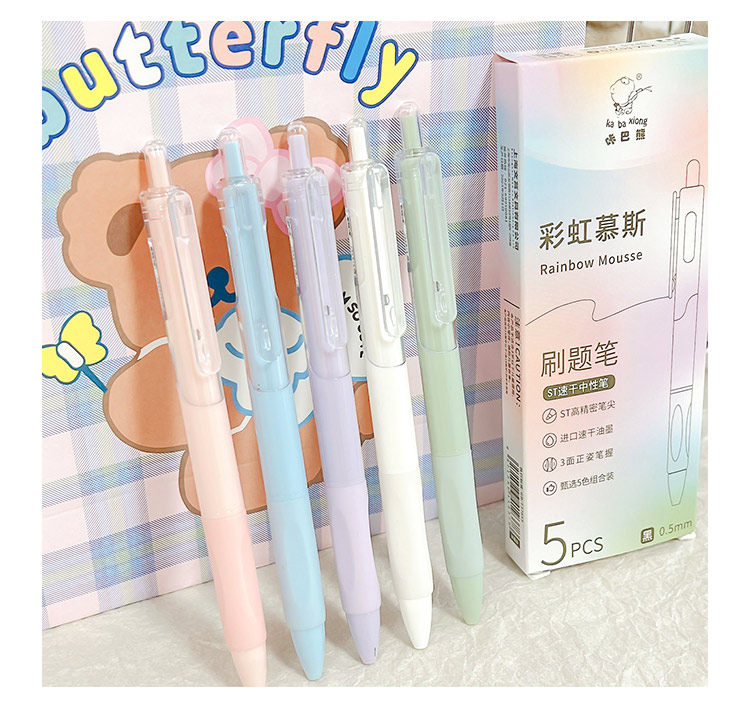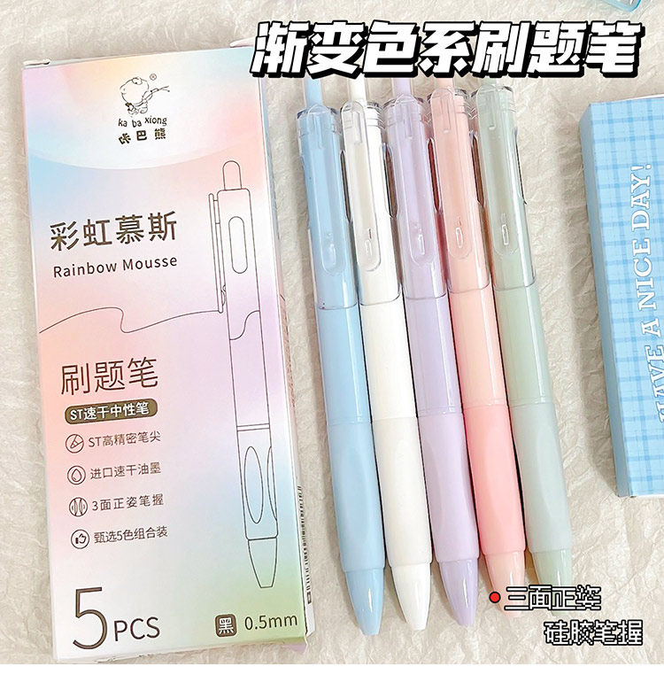 开学福利!【6盒30支】咔巴熊彩虹慕斯刷题笔学生用高颜值速干按动中性笔0.5黑色考试顺滑圆珠笔水笔