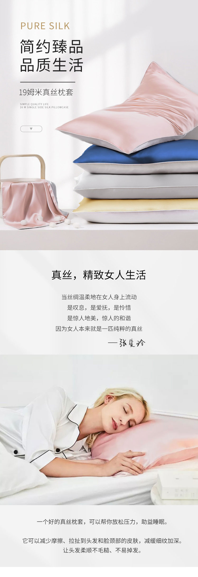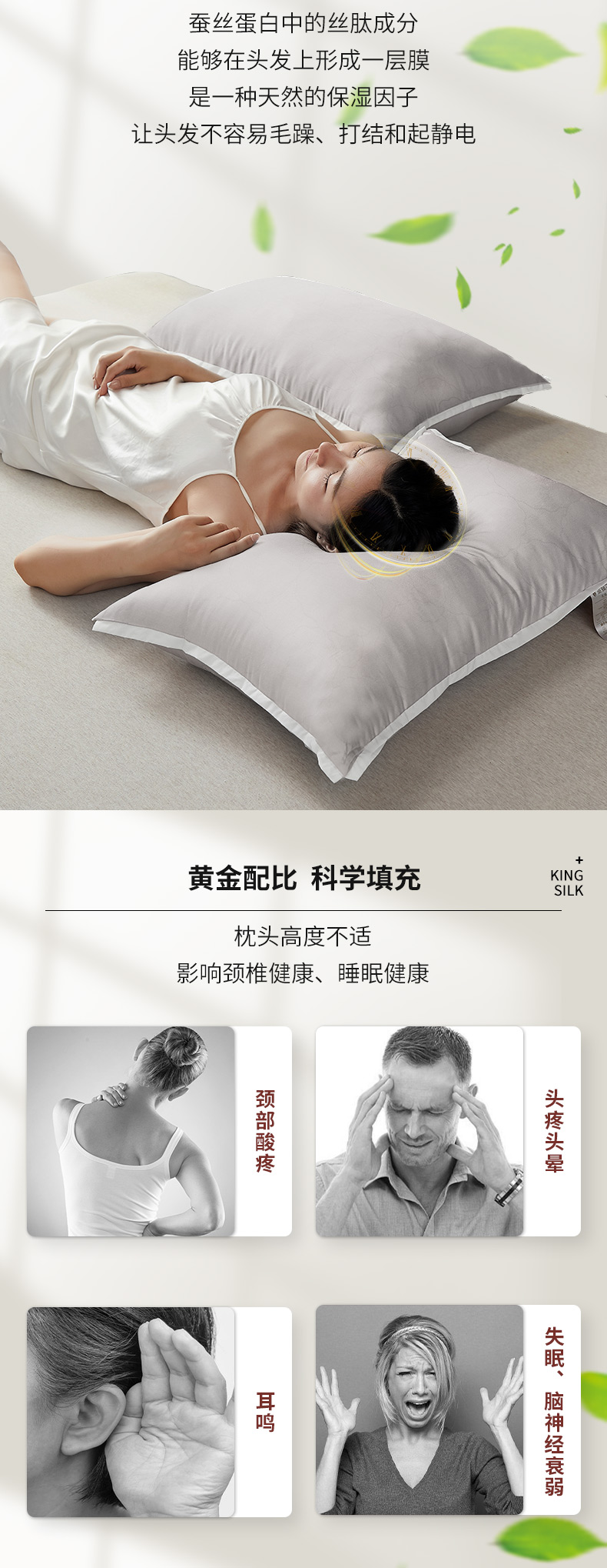【斑马专属】睡出水嫩肌肤 柔顺秀发 钱皇桑蚕丝真丝枕套 +蛋白超柔枕头 19姆米重磅真丝枕套 防螨AB面
