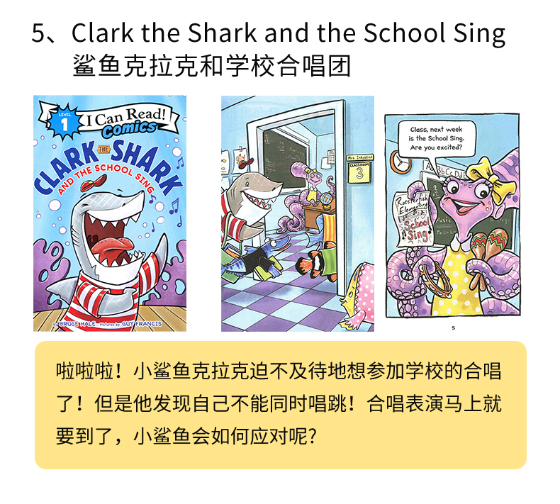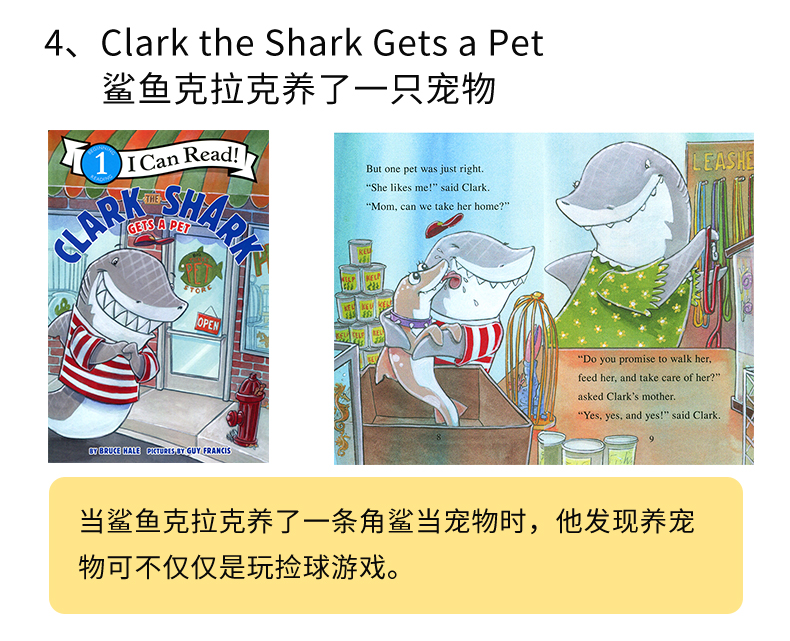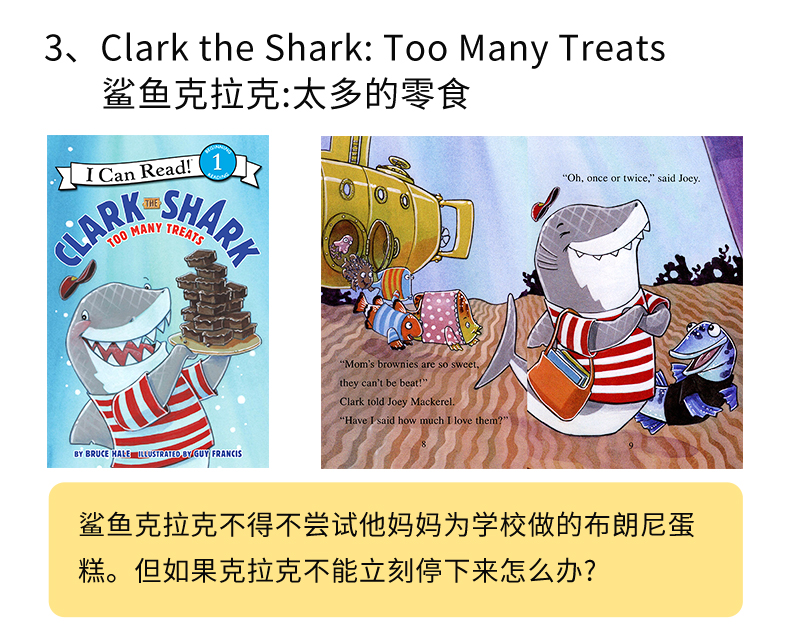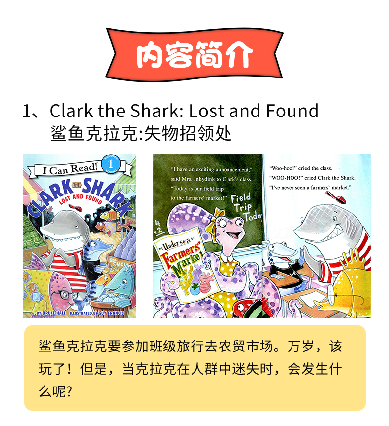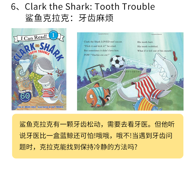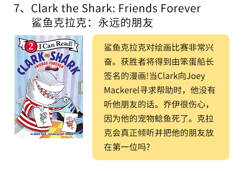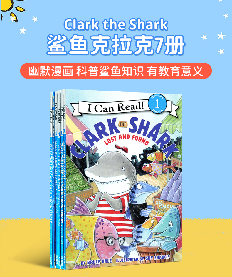 进口英文原版 Clark the Shark 鲨鱼克拉克7册合售 I Can Read系列 level 1阶段 蓝思值220L-330L