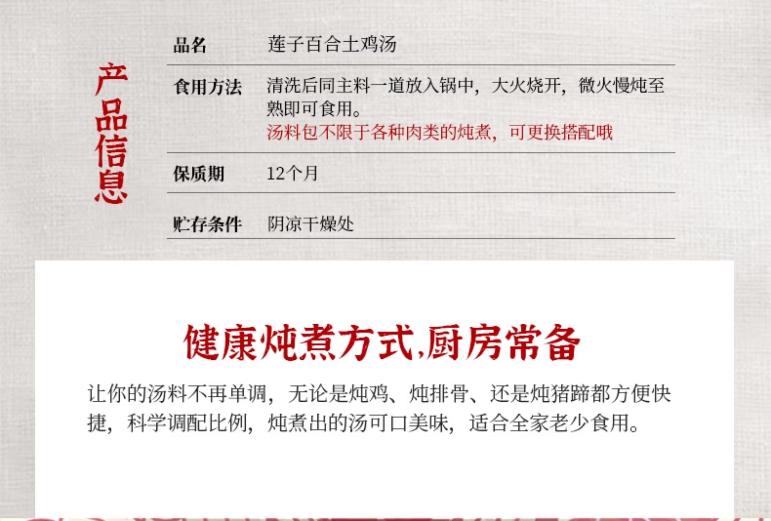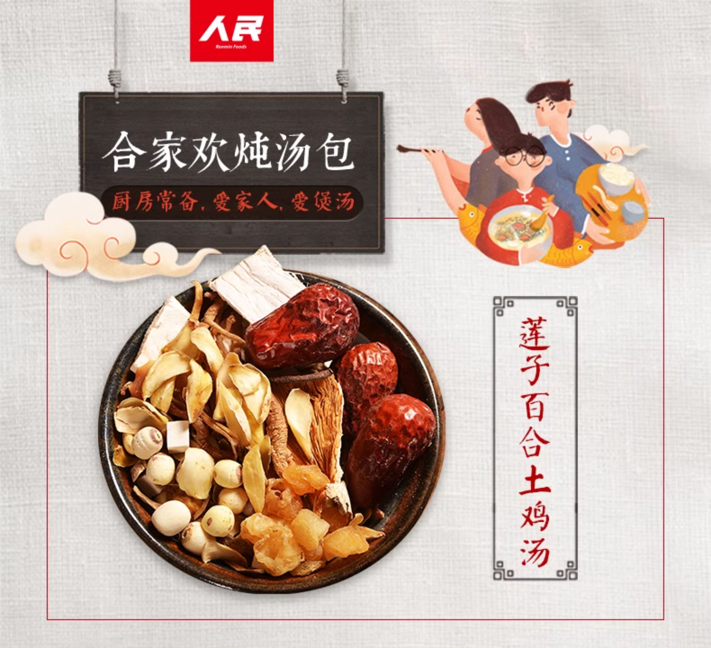 人民 莲子百合土鸡汤料100g