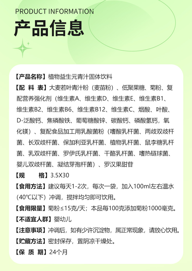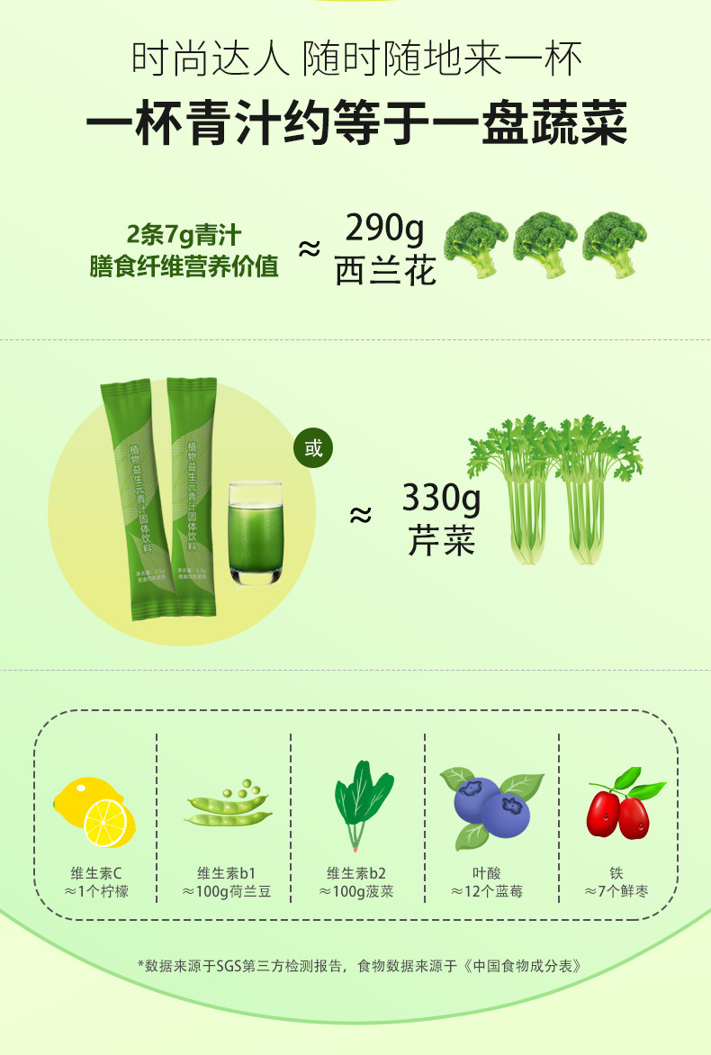 【食蔬新方式!植物益生元青汁】成分丰富 不走弯路 随时随地补充!口感细腻丝滑,健身好搭档Y