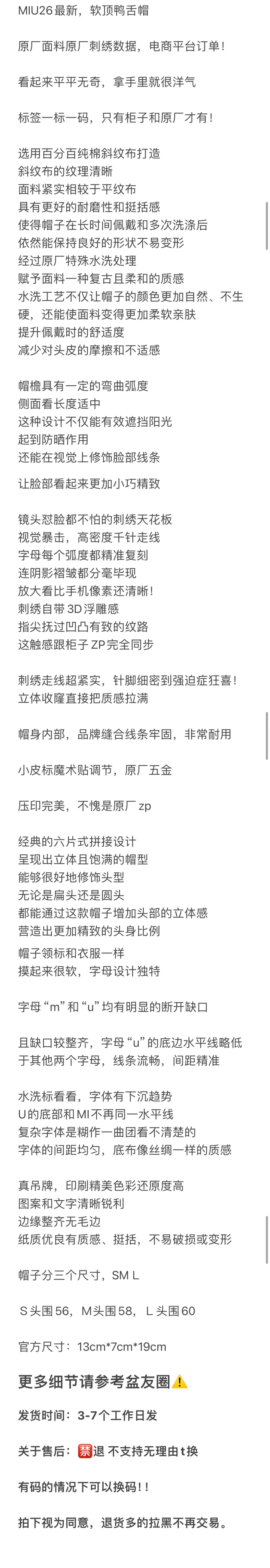 重磅渠道 人手款 缪软顶鸭舌帽 莫兰迪色系 男女同款! 纯棉斜纹布