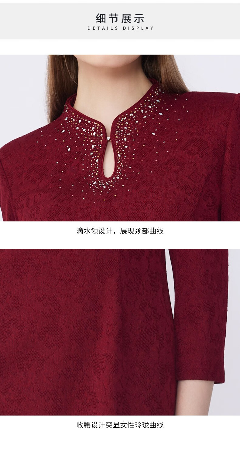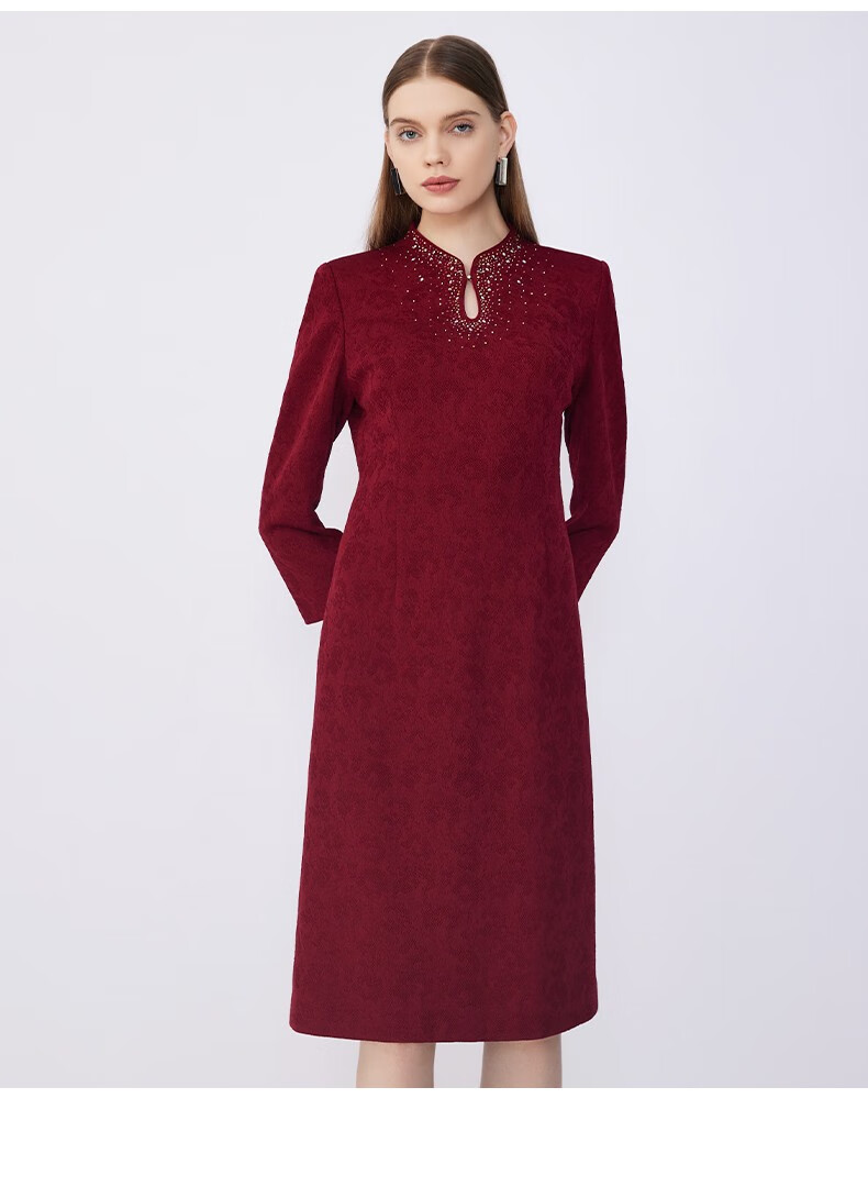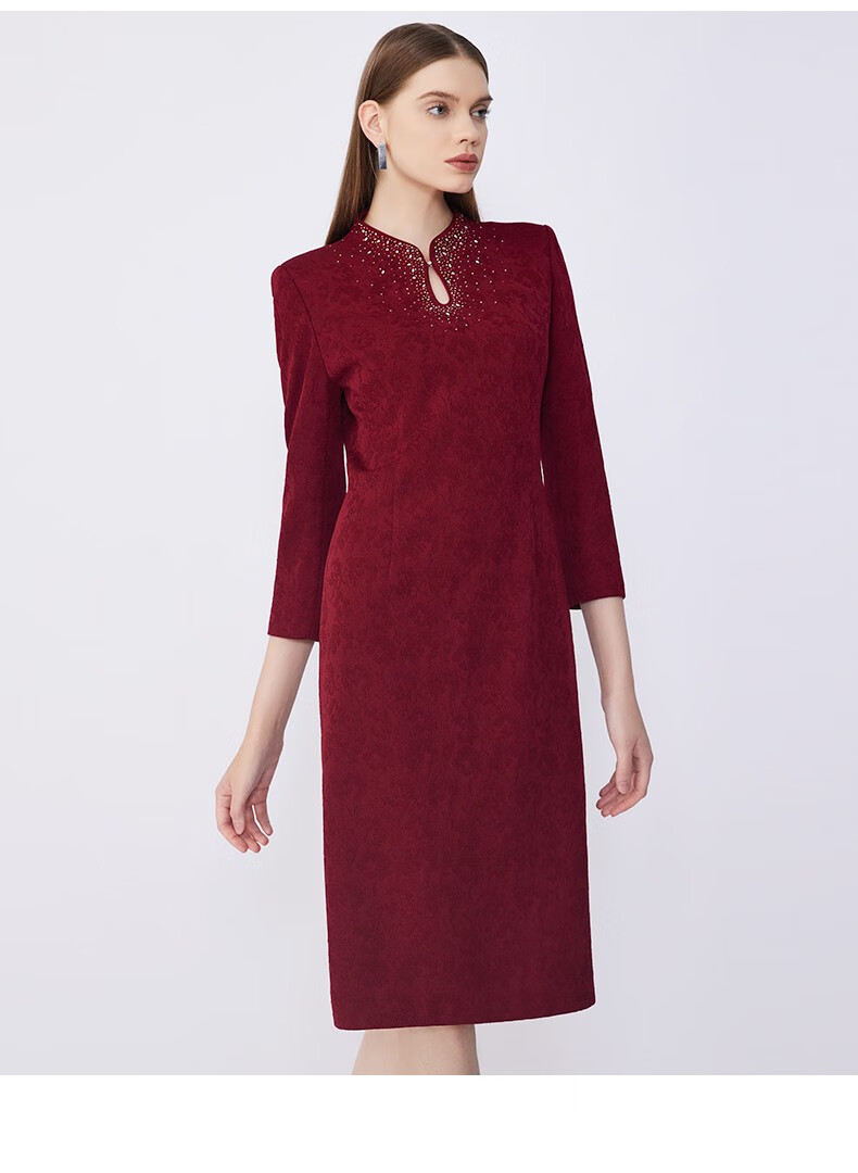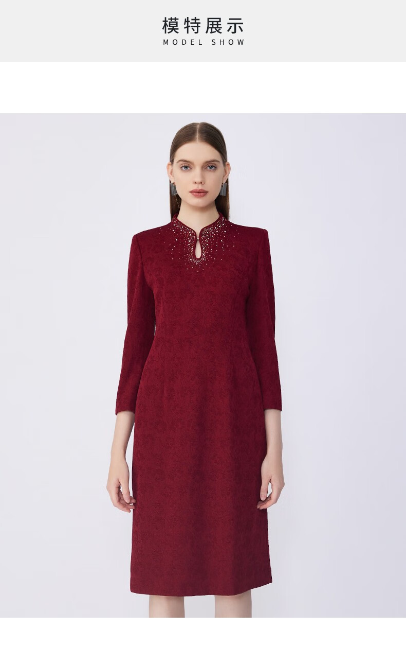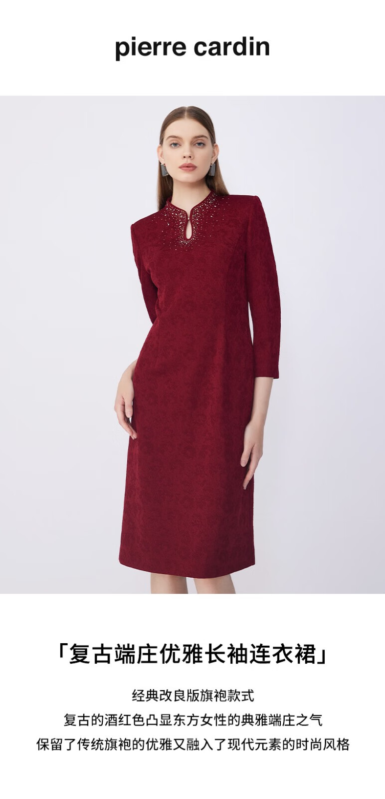 皮尔卡丹女装连衣裙醋酸旗袍领修身端庄场合宴会A字裙P0315DL05T3