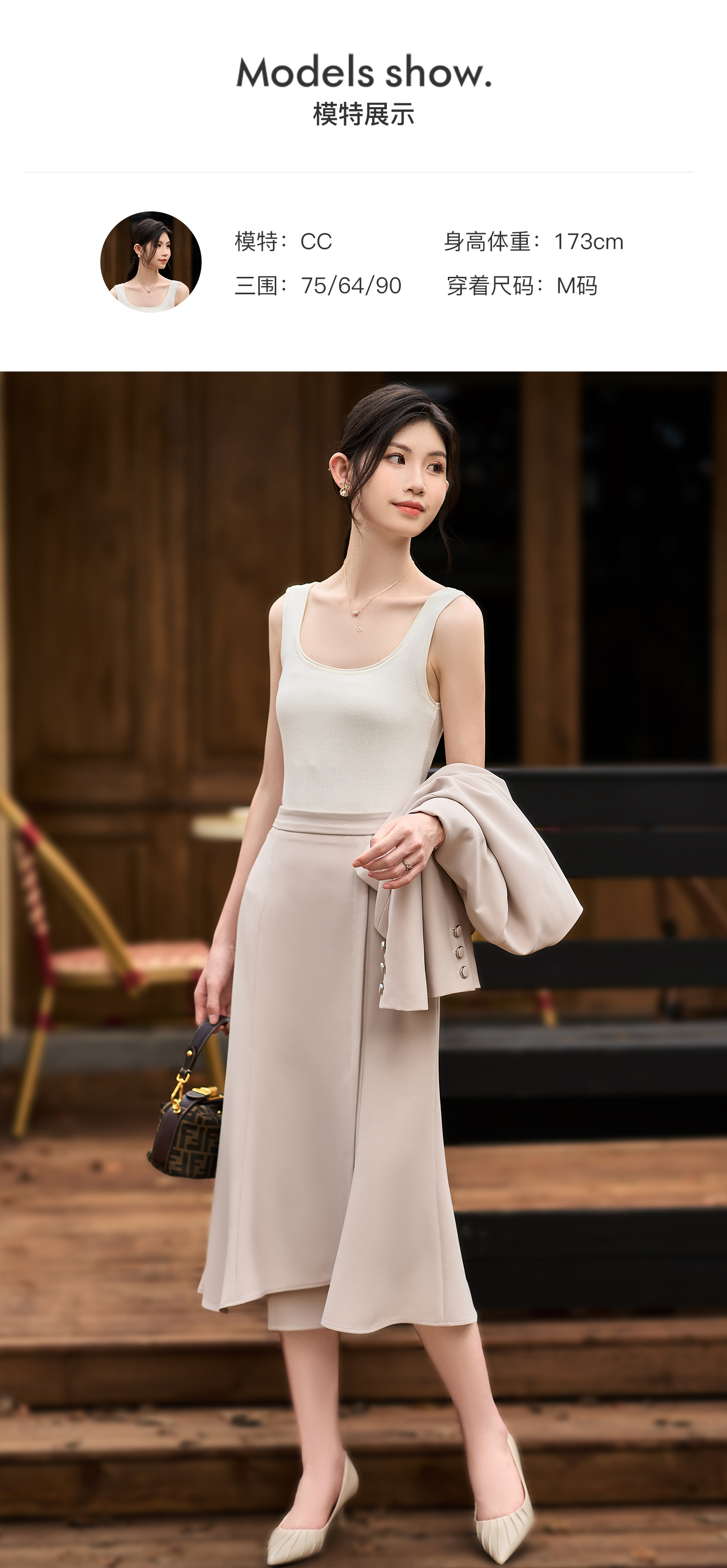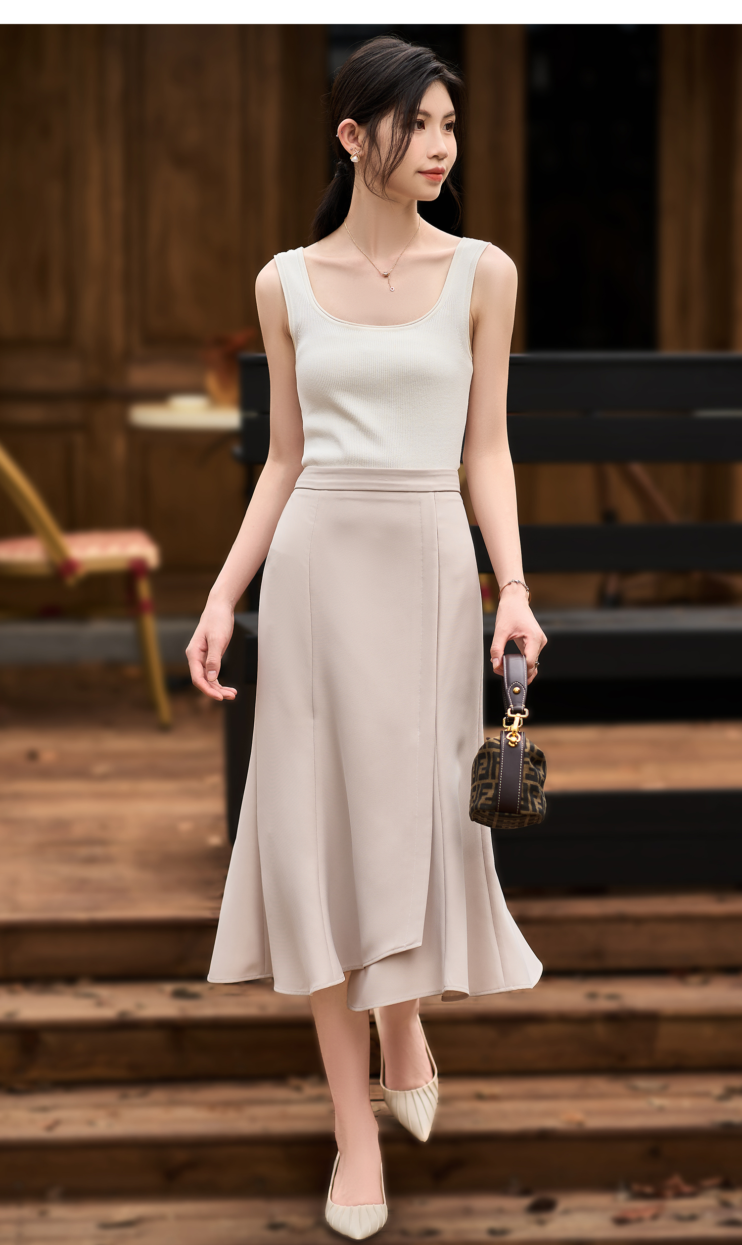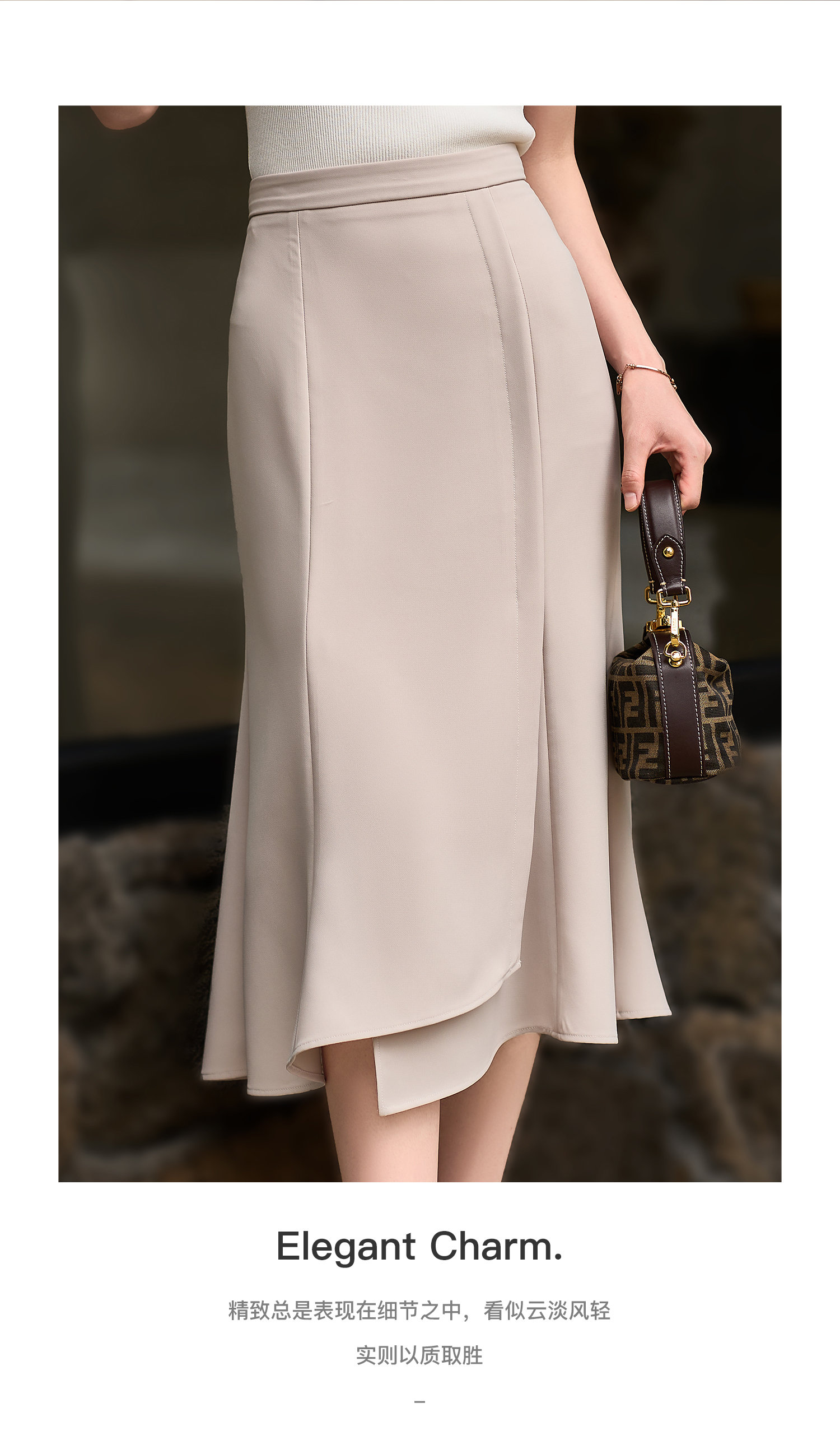 剩 米思阳2026春季新款包臀鱼尾裙简约高腰显瘦过膝开叉半身裙女3155