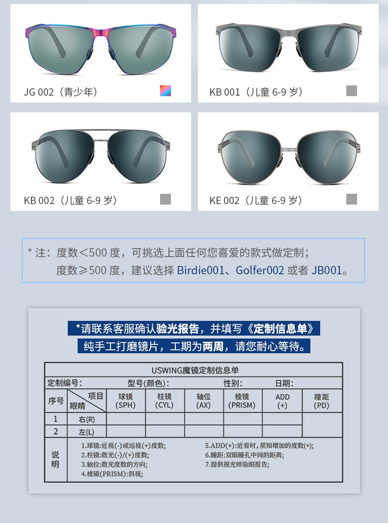 USWING【度数定制】Uswing魔镜 高尔夫太阳眼镜高度数定制 800度以上