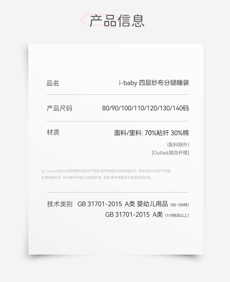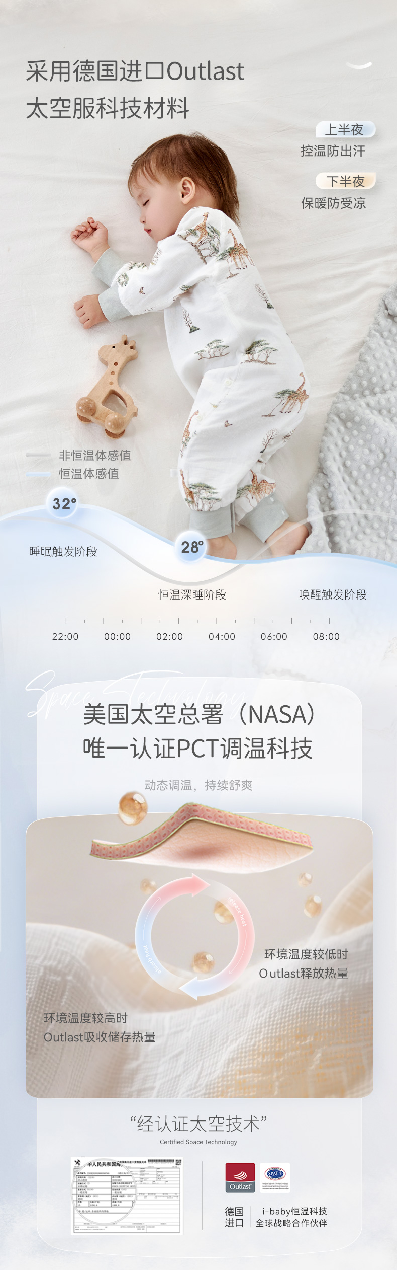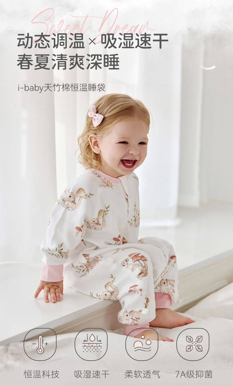 【2025年春夏新品】i-baby自然生长四层纱布恒温分腿睡袋