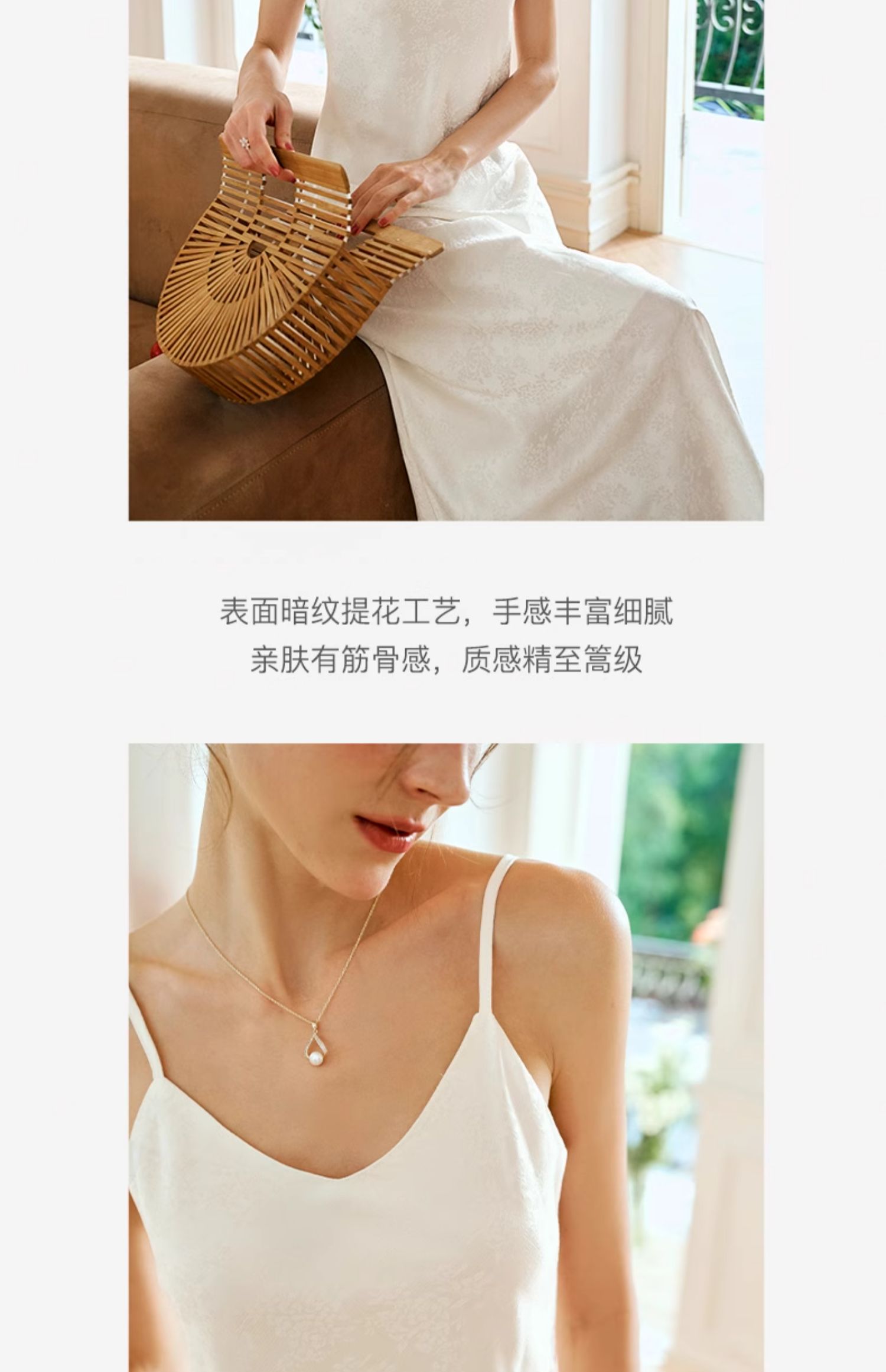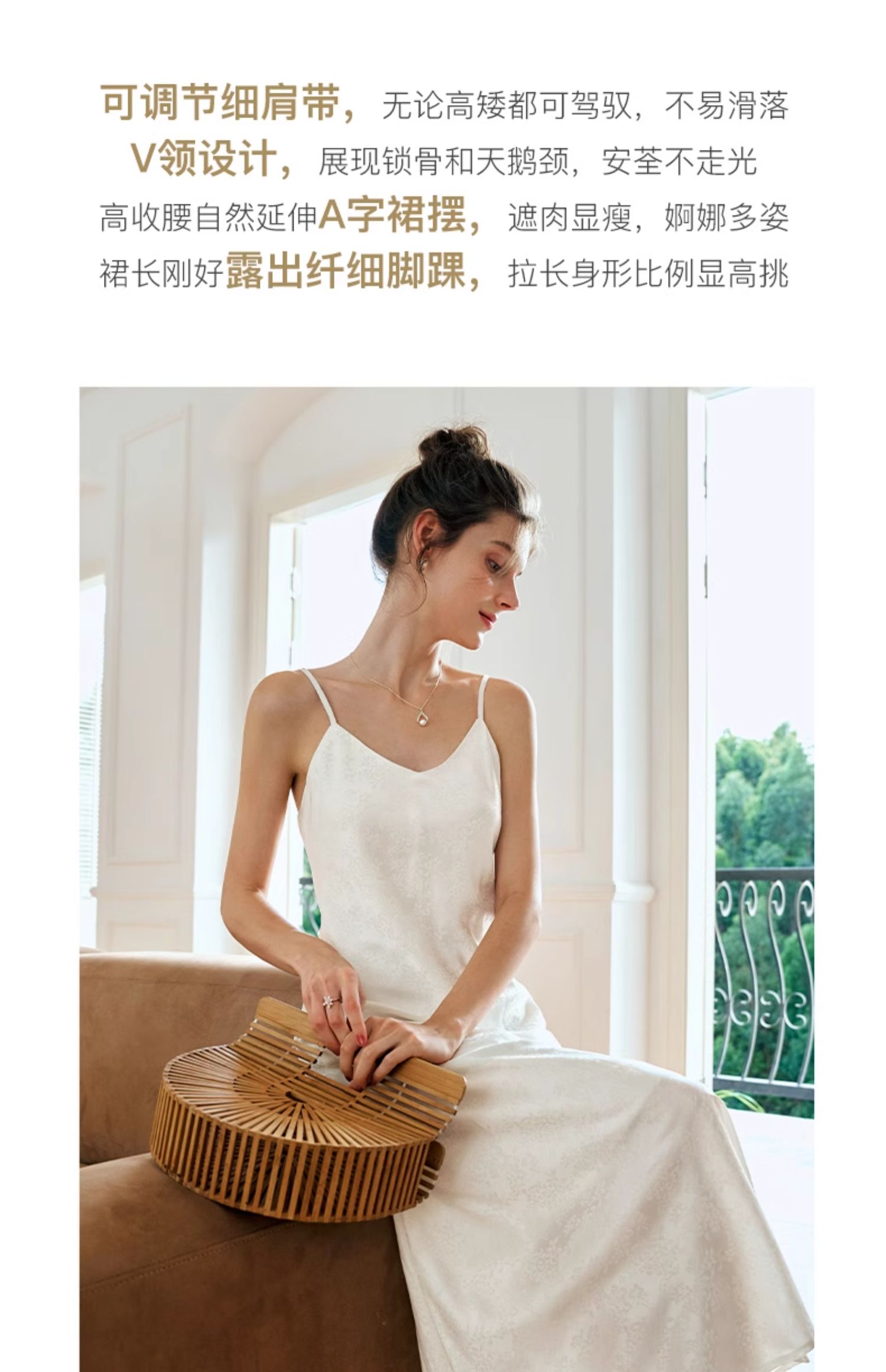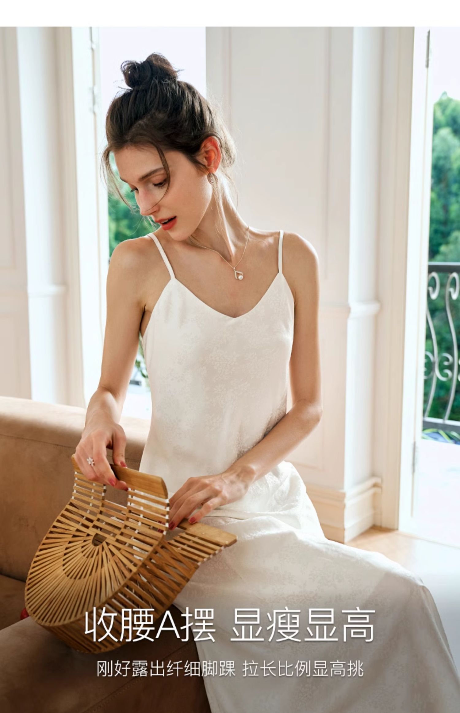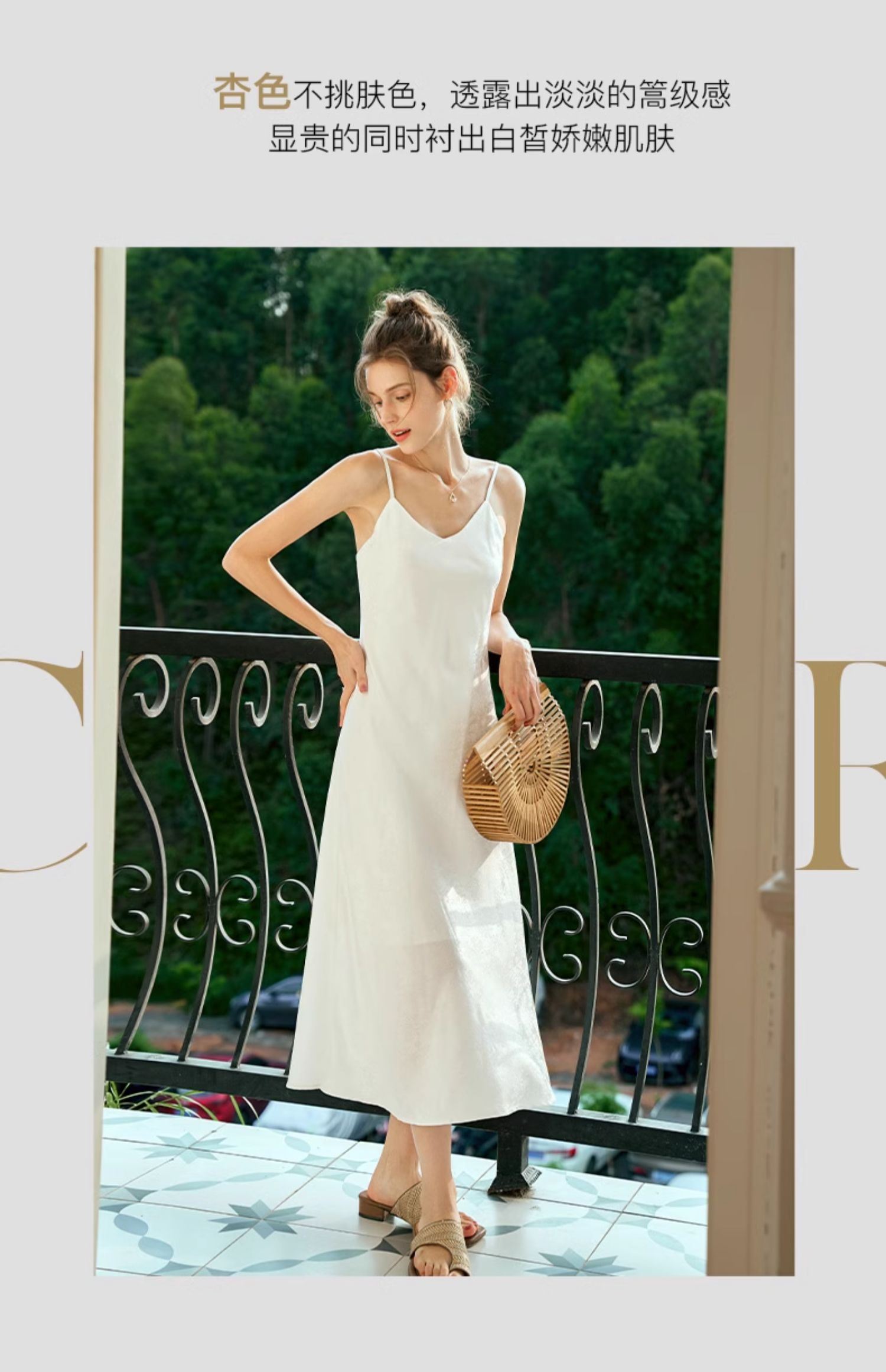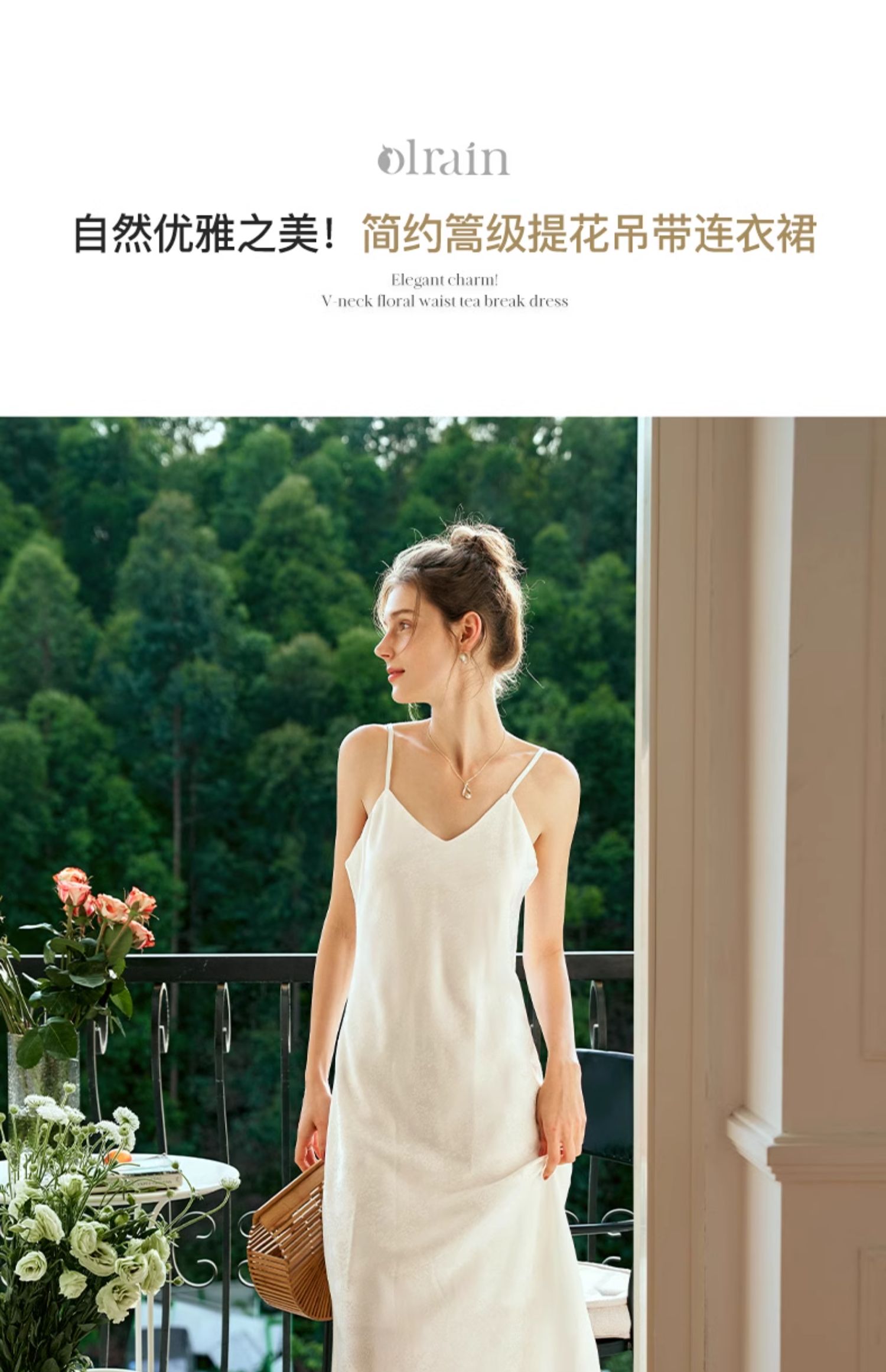 欧芮儿法式杏色吊带连衣裙女夏季2024年新款度假风高级感提花长裙
