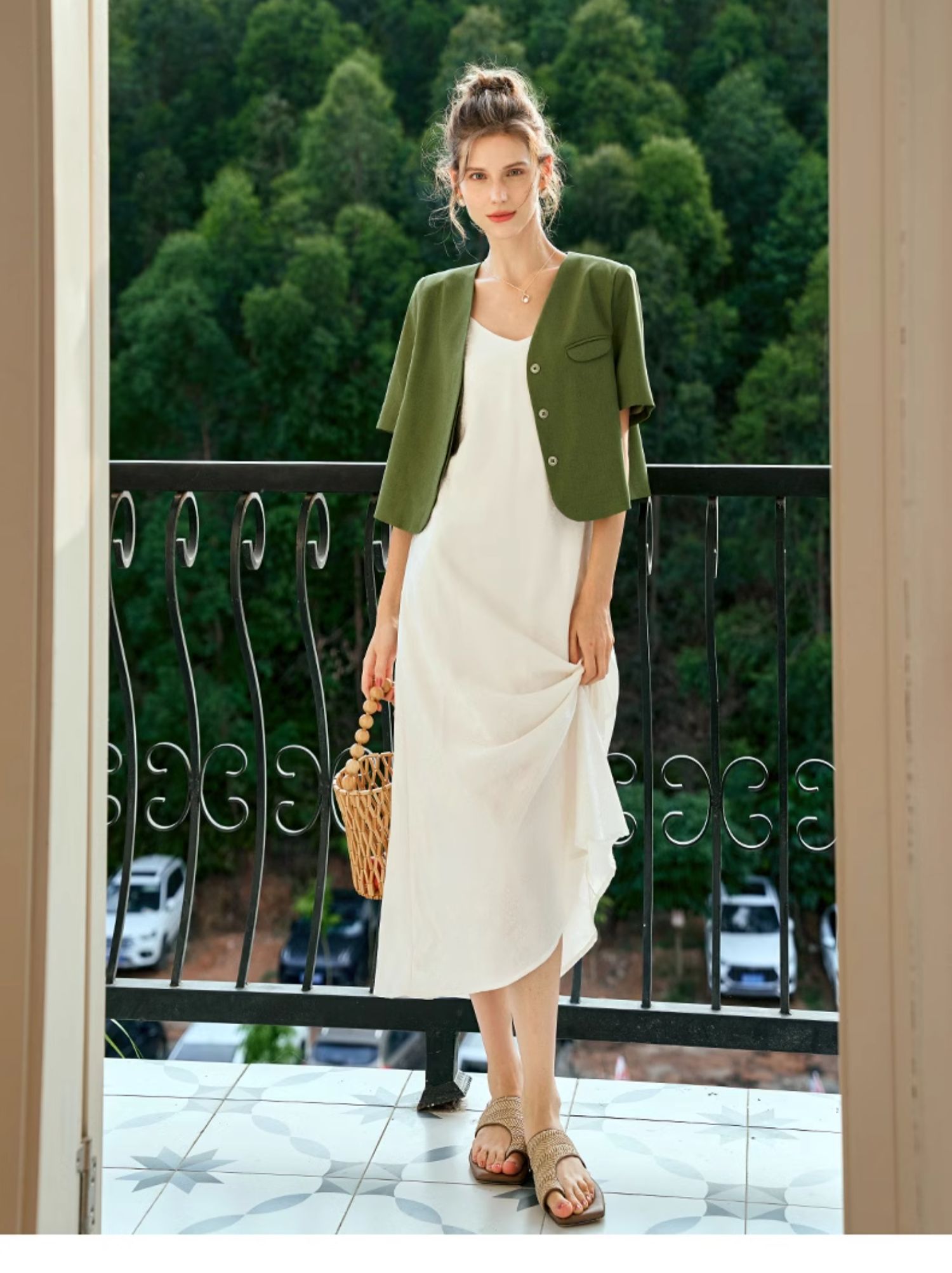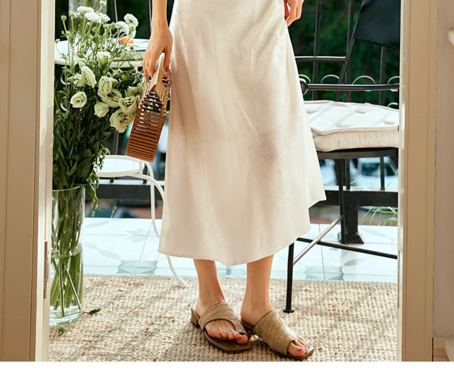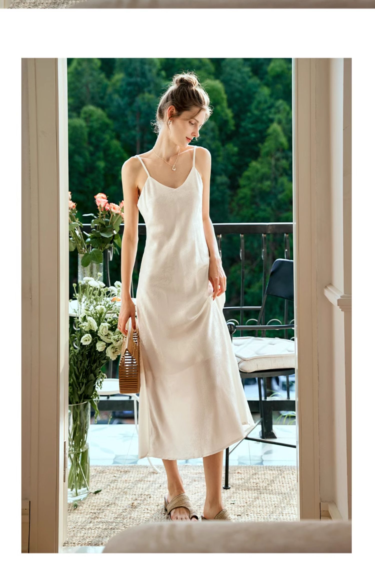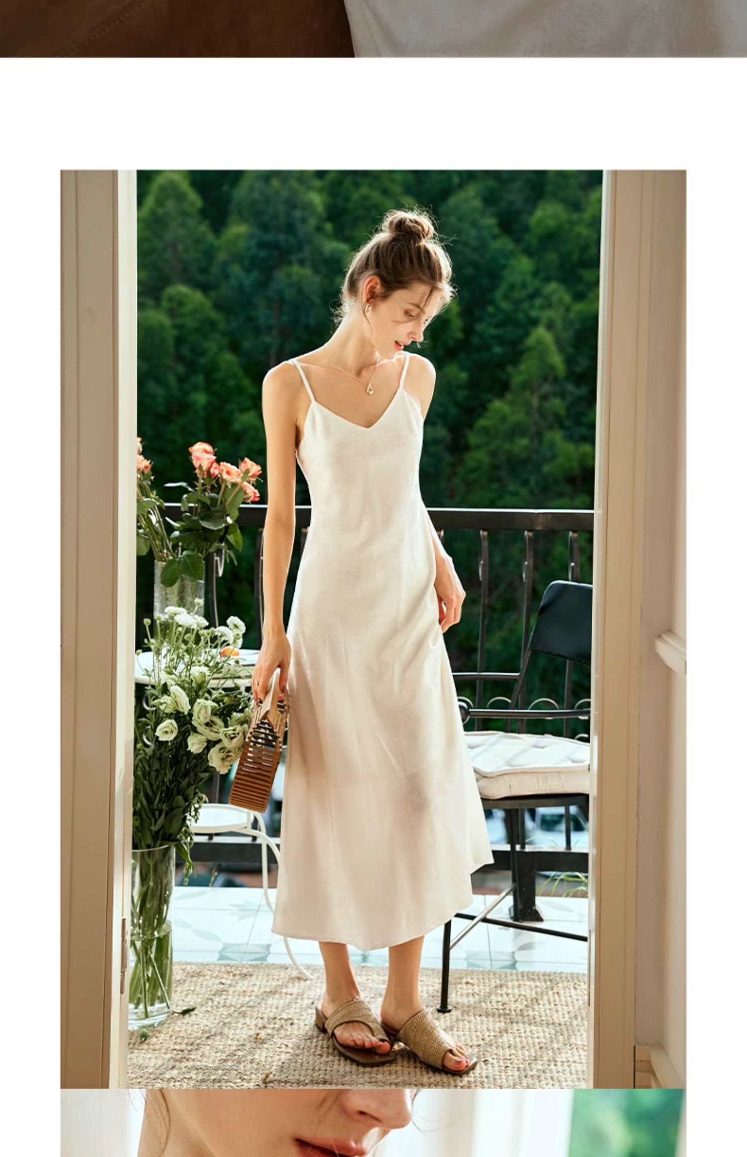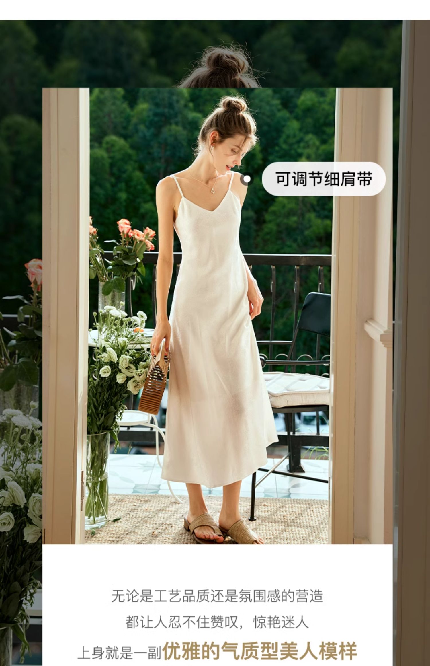 欧芮儿法式杏色吊带连衣裙女夏季2024年新款度假风高级感提花长裙