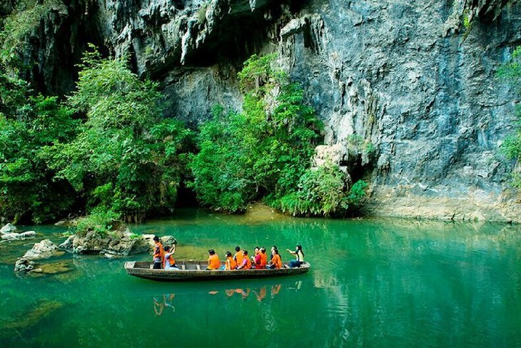 10:00 前往有“南天第一英西峰林走廊”的【洞天仙境】(又名穿天岩、绿潭仙境){游览约 2 小时}。在广东省英德市九龙镇西面2公里,是一个溪流穿山而过的岩洞,乘船游览,流程约200米,洞内洞厅广阔,钟乳石形态多样,洞顶有2个穿孔通天,光线从中透入洞里。洞内有一片陆地(万绿福岛),生长着茂盛的阴生植物,密密麻麻,枝叶婆婆,呈原始状态,像这样的洞内小森林确是一个罕风奇观。看着这里有光、有水、有地、有林,感觉像走入另一个世界,“别有洞天”可能就是这样一意境吧。作为华南第一天坑,是极具观赏价值的喀斯特地貌,不但具有暗河曲拐,沟壑险峻的地理特征,而且融山、水、洞、潭、瀑布、天生桥、天坑、绿洲为一体。山中有洞,洞中有水,洞行山绝,空山闻水声,碧潭衍飞瀑。2015 年,该度假区将建成“亚洲首创-溶洞悬空玻璃栈道”,在洞内绝壁之上,高达近百米,可俯瞰全洞,惊险刺激。
