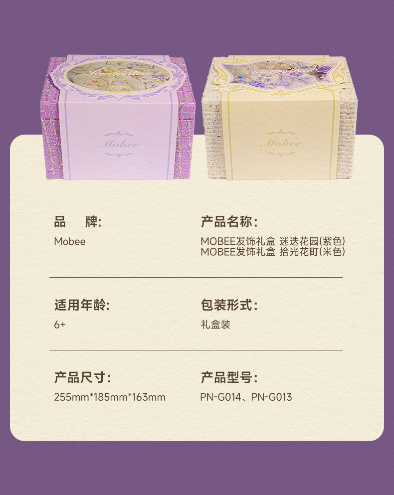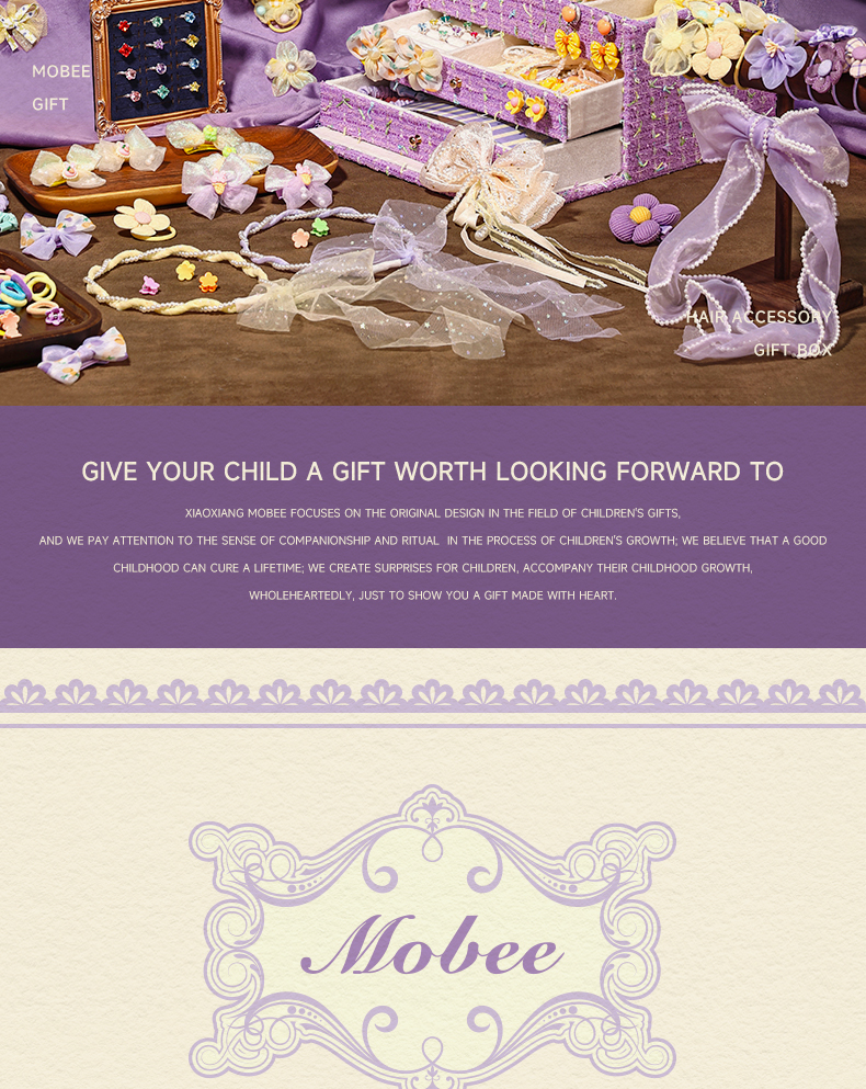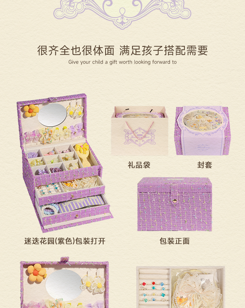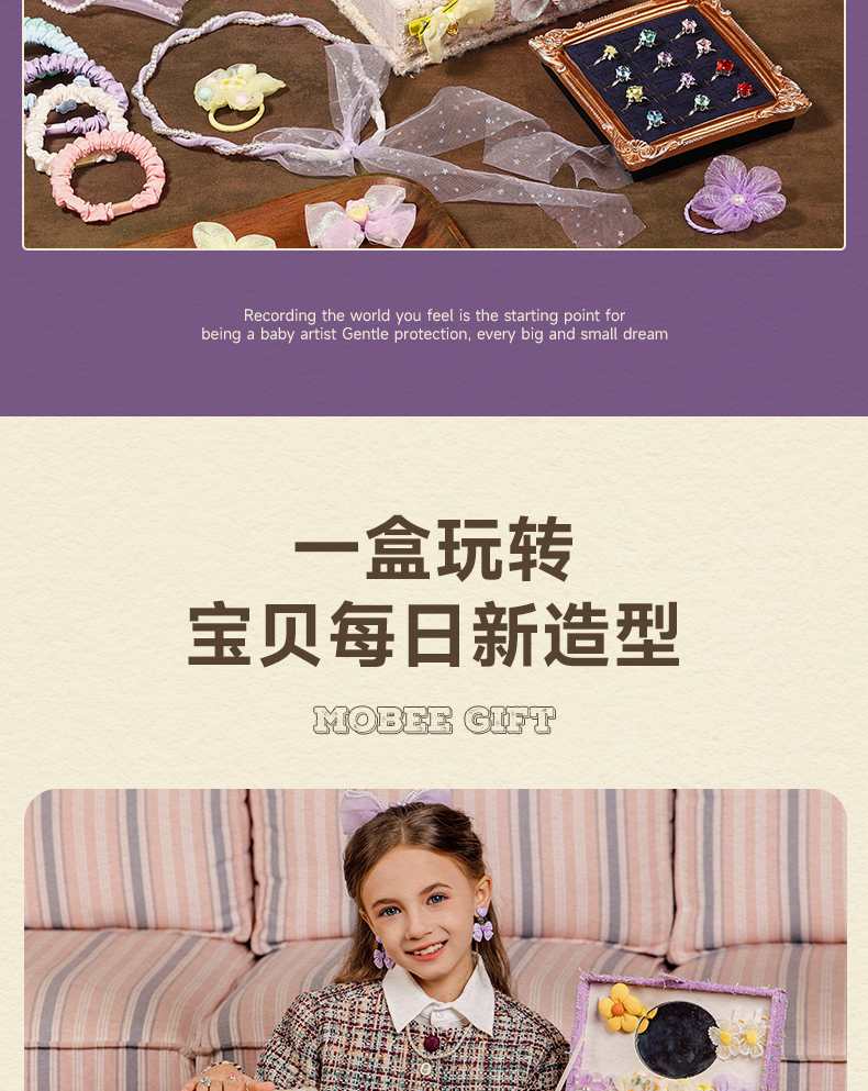 【赠礼袋】mobee儿童发饰礼盒套装 女孩侧边发夹箍头绳皮筋 迷迭花园 拾光花町首饰收纳礼盒装 可做发圈 发卡 发箍 梳子 项链等