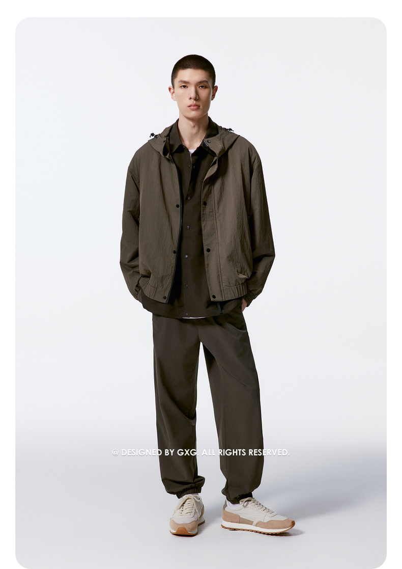 GXG男装 咖色宽松束脚裤透气男休闲裤 24年秋G24X023056