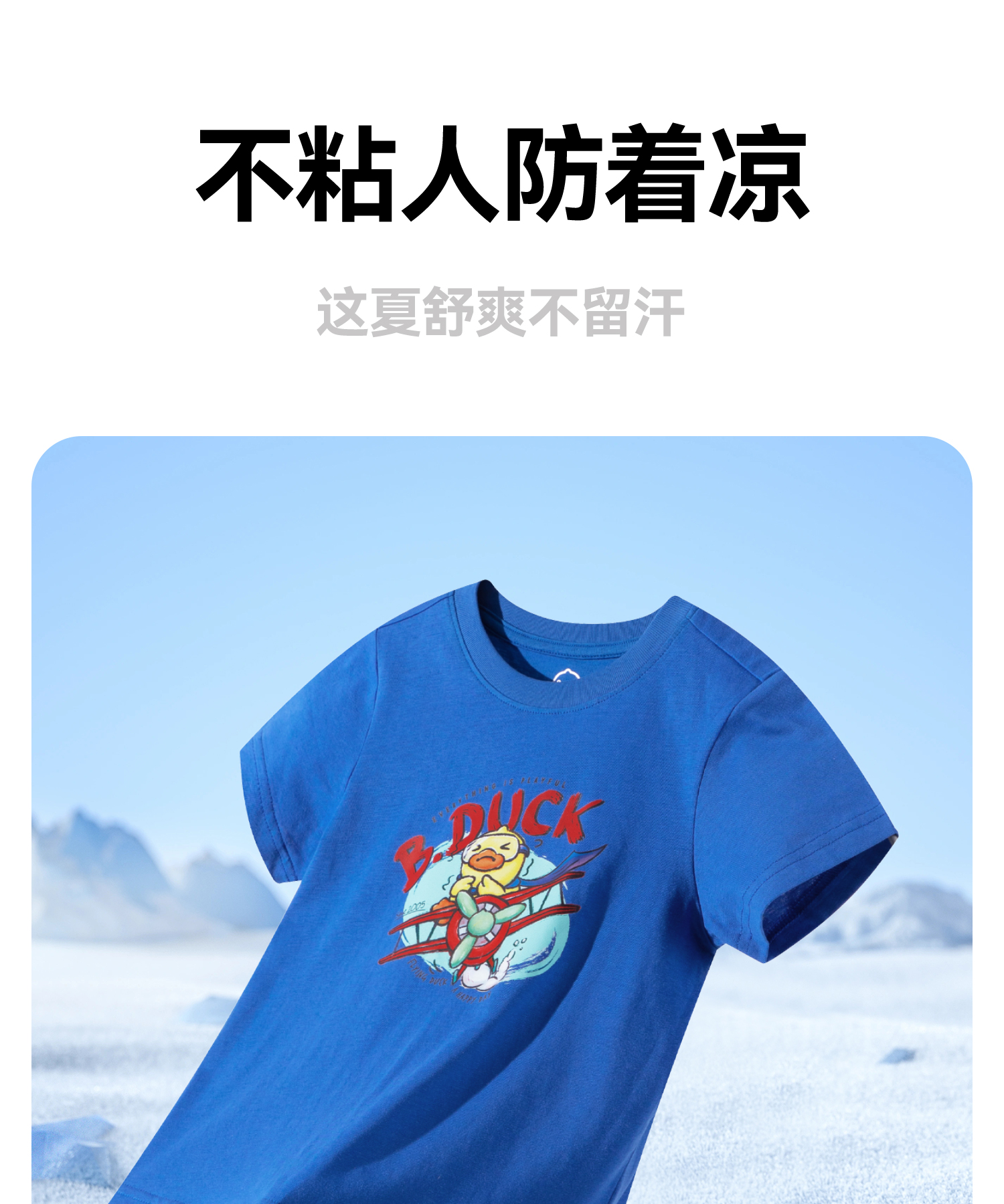 [冰感速干]bduck小黄鸭童装宝宝短袖t恤夏装男童半袖凉感儿童上衣90-150 BF2701022