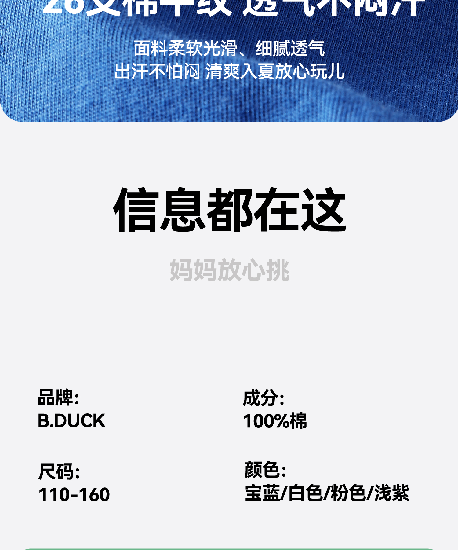 B.Duck小黄鸭童装夏季男女童短T恤110-160 BF2501983