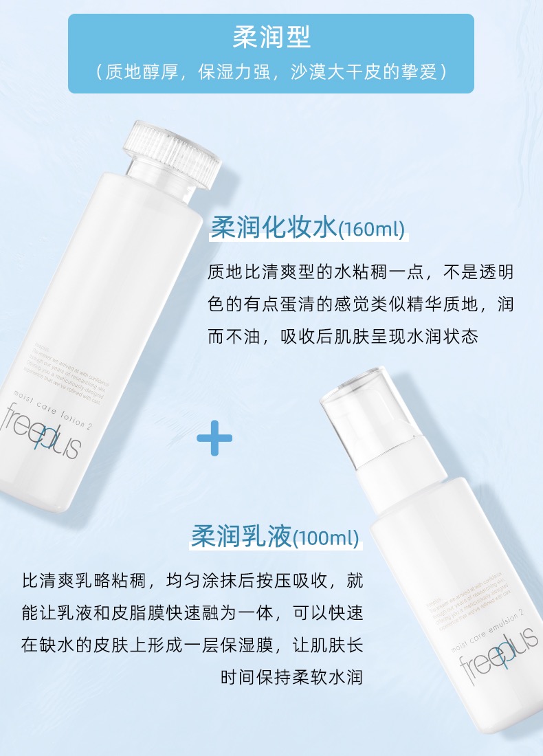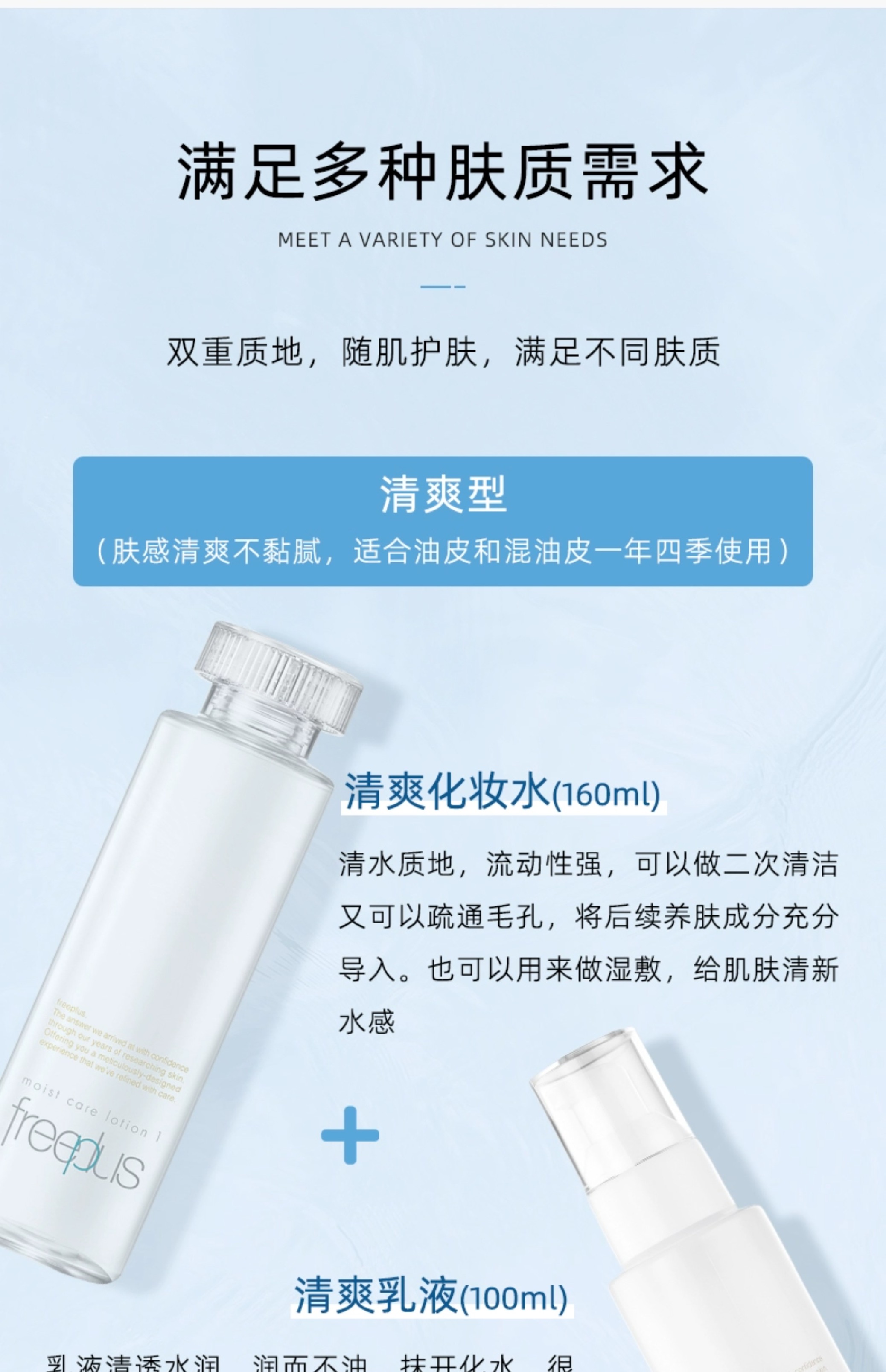 日本freeplus芙丽芳丝 水乳清爽滋润型 温和补水敏感肌孕妇可用无添加 水160ml+乳100ml