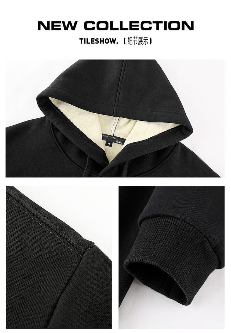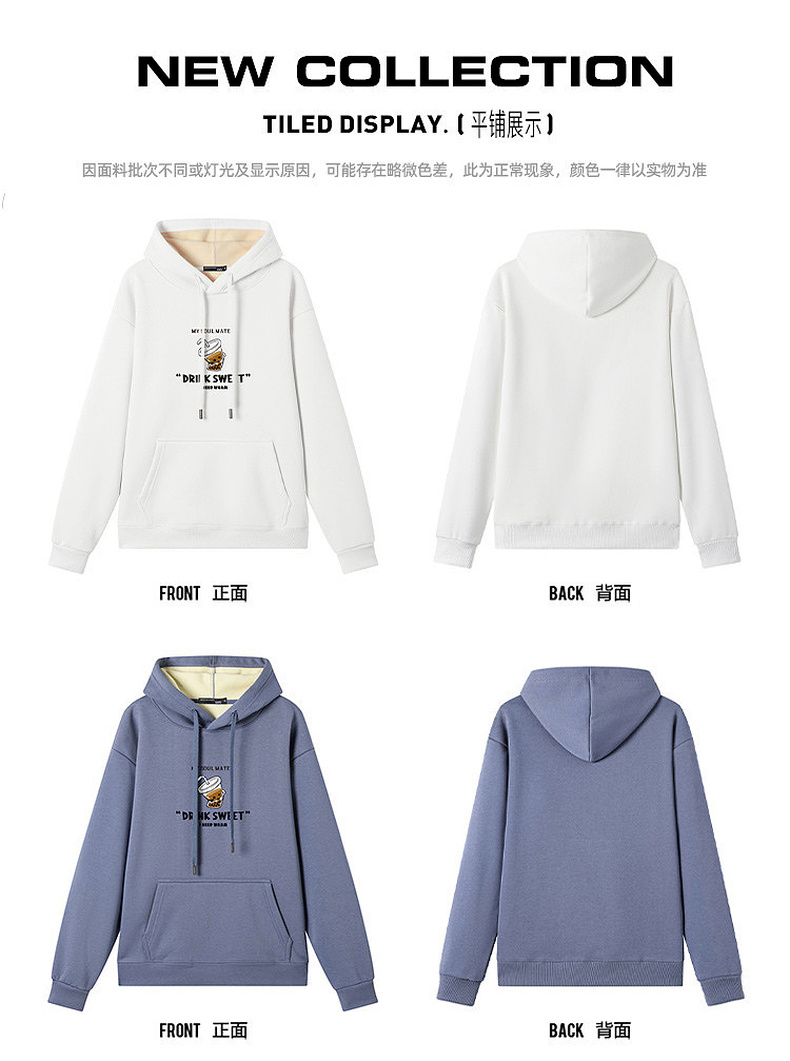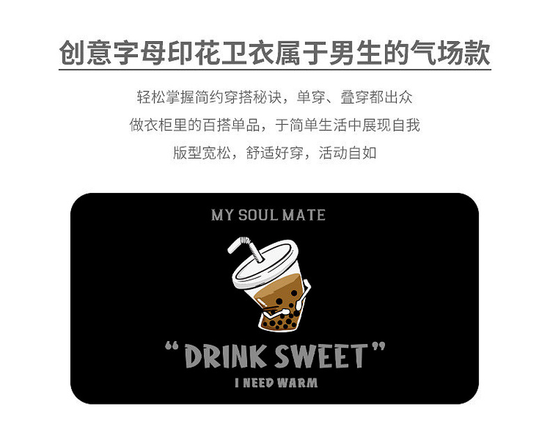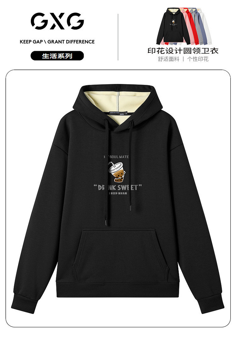 GXG男装25秋冬季奶茶杯印花图案时尚百搭男女同款加绒连帽卫衣K&C